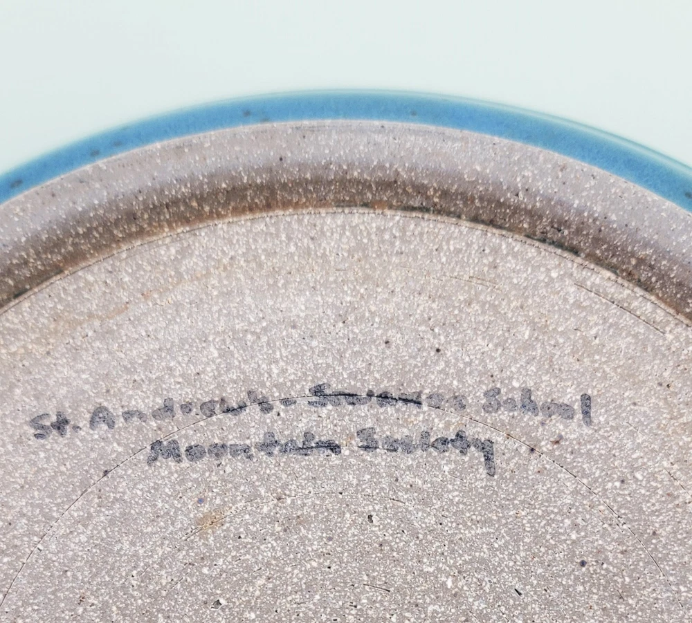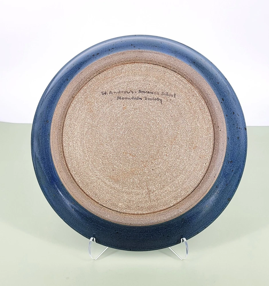 BRAND: Handmade Pottery Plate by St. Andrews Sewanee School, Mountain Society COLORWAY: Avocado Green, Light Blue, Denim Blue, Tan. SIZE: Approximately 10" Across and 1.5" Deep. CONDITION: This beautiful, rustic pottery handmade plate is marked St. Andrews Sewanee School, Mountain Society and has the artist's mark of an X on the back. It is in beautiful condition and extremely well made. The lovely natural colors work perfectly with the design of the plate. I have found no signs of cracks, crazing or chips. The plate is heavy and would look beautiful in a Farmhouse or even a clean contemporary decor! Please see my photos for additional information regarding the condition. Thank you as always for stopping by today and enjoy a lovely evening!!