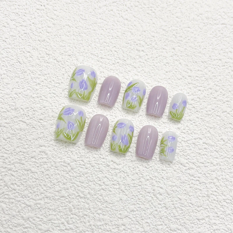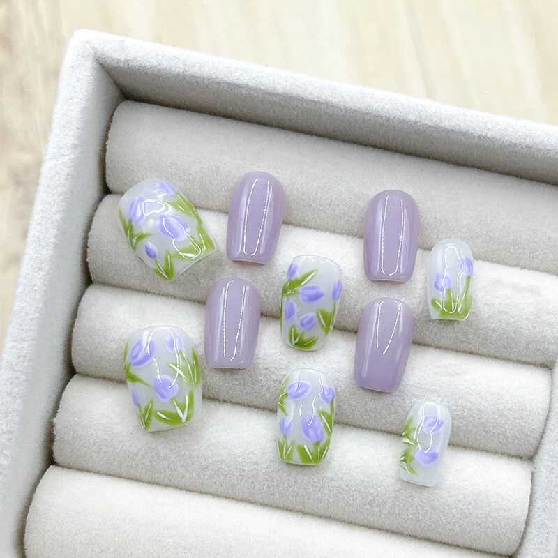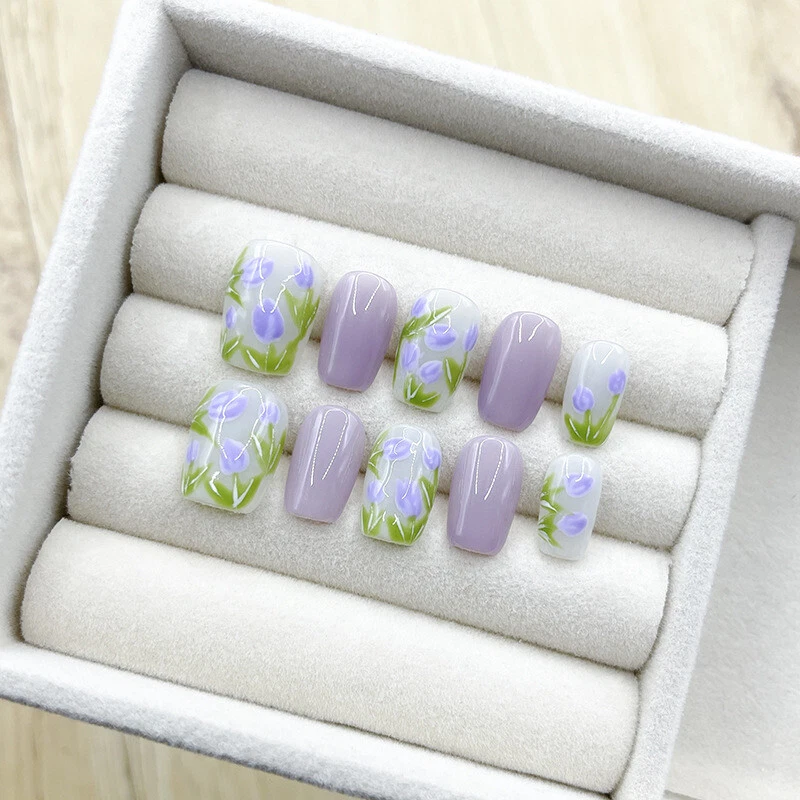 Each set is handmade according to size.Please understand some orders will take longer to ship out.Thanks for support and patience! Please under feel free to contact me with any questions,comments,or concerns!! Handmade Press on Nails Application Steps: (1)Start by preparing your nails: remove any old polish remove any dead skin away from cuticle area to ensure that your nail has a bigger area for the sticker to properly fit for better adherence when nail is applied. (2) Gently file the top surface of you nail to remove any residue prior to applying the Press on Nails. (3) Be sure your nail surface is clean and dry. (4) Select the suitable size of adhesive sticker for your fingernail before you place the sticker (5) Gently remove the top protective layer on the adhesive sticker and place on the press on nail (6) Align the press on nail with your natural nail starting at the cuticle and pressing down towards the tip of your natural nail please remember to hold press on nail for a minimum of 30 seconds to ensure there is no air space between press on and natural nail. Lastly, Enjoy Your Beautiful Nails!!! Handmade Press on Nail Removal Steps: Immerse hand in warm soapy water for a minimum of 2 minutes this will assist in removing the glue sticker while maintaining the condition of the press on nail for re-use. Notes on Handmade Production: Since it is 100% hand customized, especially some complex patterns, there is no way to be the same as the pictures shown. We hope you can understand, thank you for your support, and we will continue to work hard! We have been striving to provide products that satisfy our customers!!!