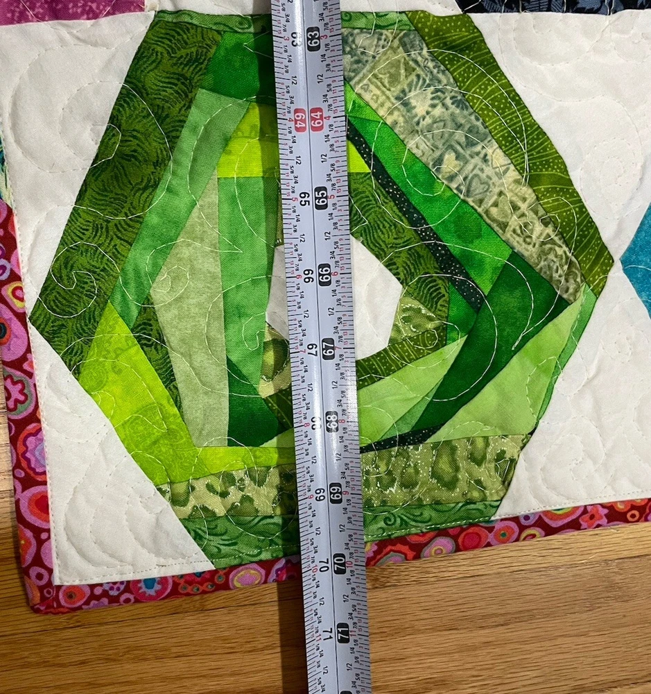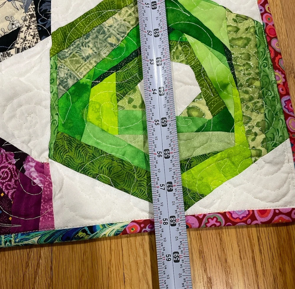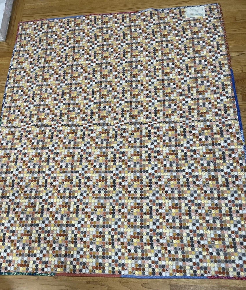 Measures 58 x 70”. This quilt was made in 2016 as a gift. It sat in the cupboard unused for 7 years. It is in beautiful impeccable condition. Rare find. The tag identifying the giver and receiver could probably be removed.