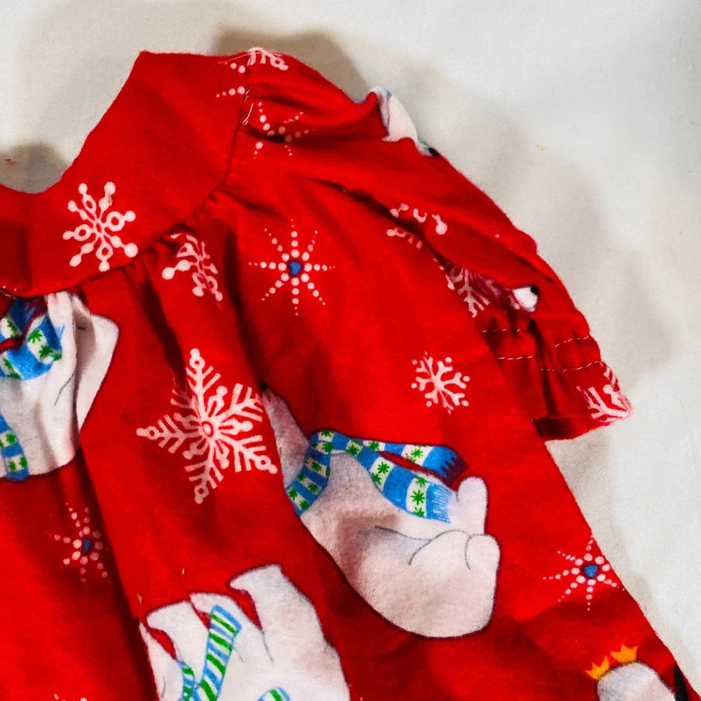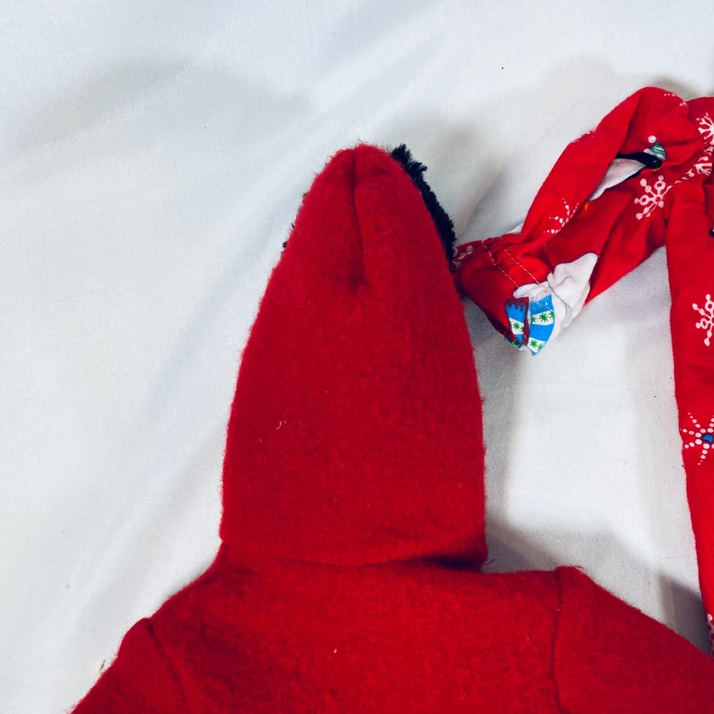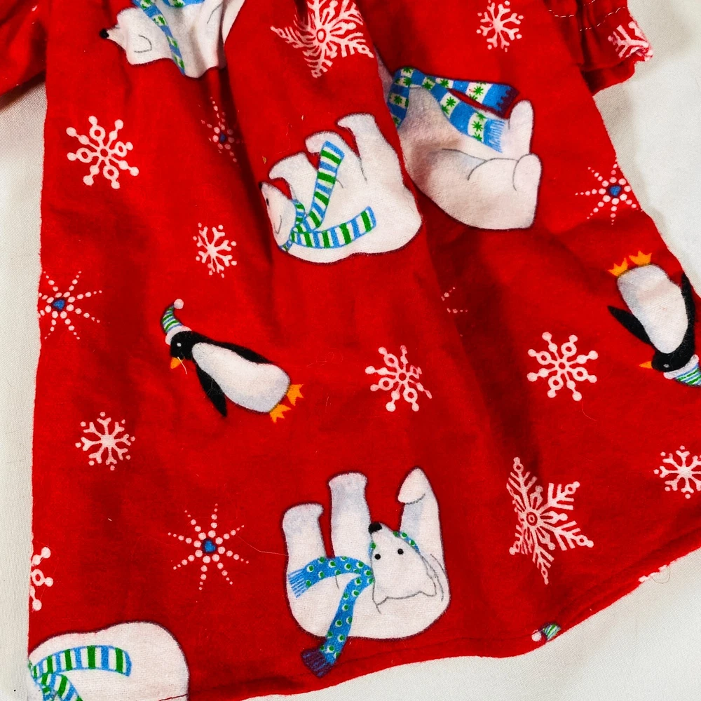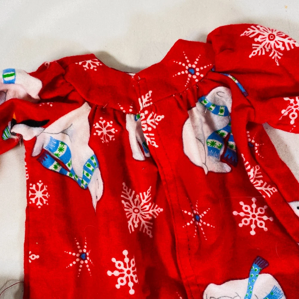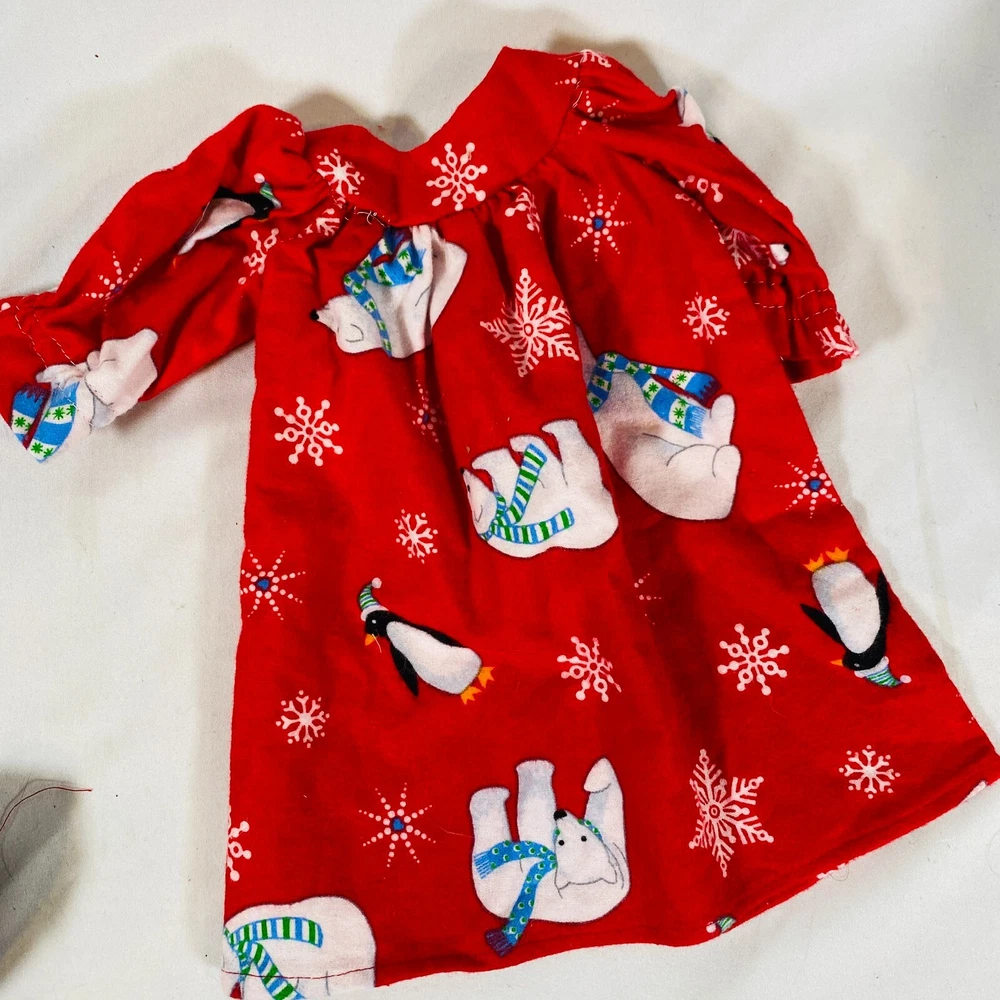 Handmade Clothes for 18" American Girl Doll or Similar. Includes thick red winter coat with black fur trim, and polar bear print flannel nightgown. Both nicely made, simple but with pretty details like functional buttons on the coat. In gently played with condition, coat has some pilling and a small hole on one sleeve as pictured, no flaws noted on nightgown. Please see all pictures for exact cosmetic condition and other details, and ask any questions before purchasing. We are a husband and wife team with a growing family, and greatly appreciate your support of our small business. Please browse our eBay store for a variety of other American Girl items. We hope you enjoy this outfit!