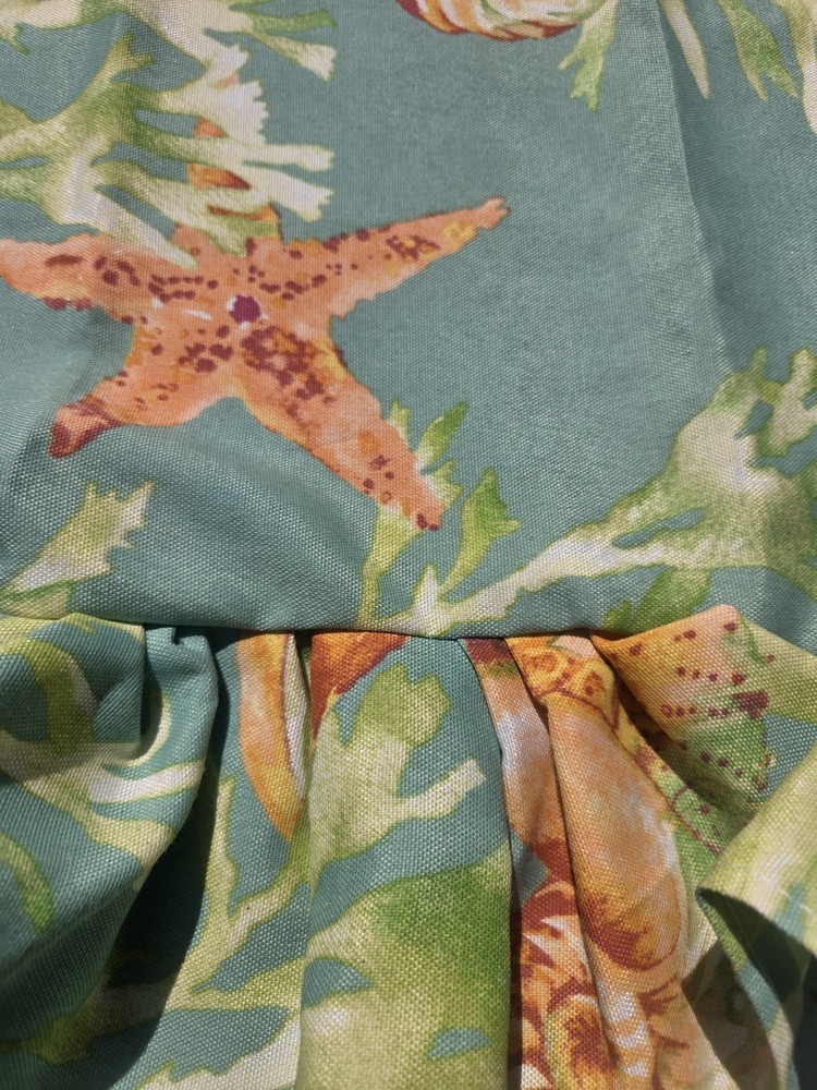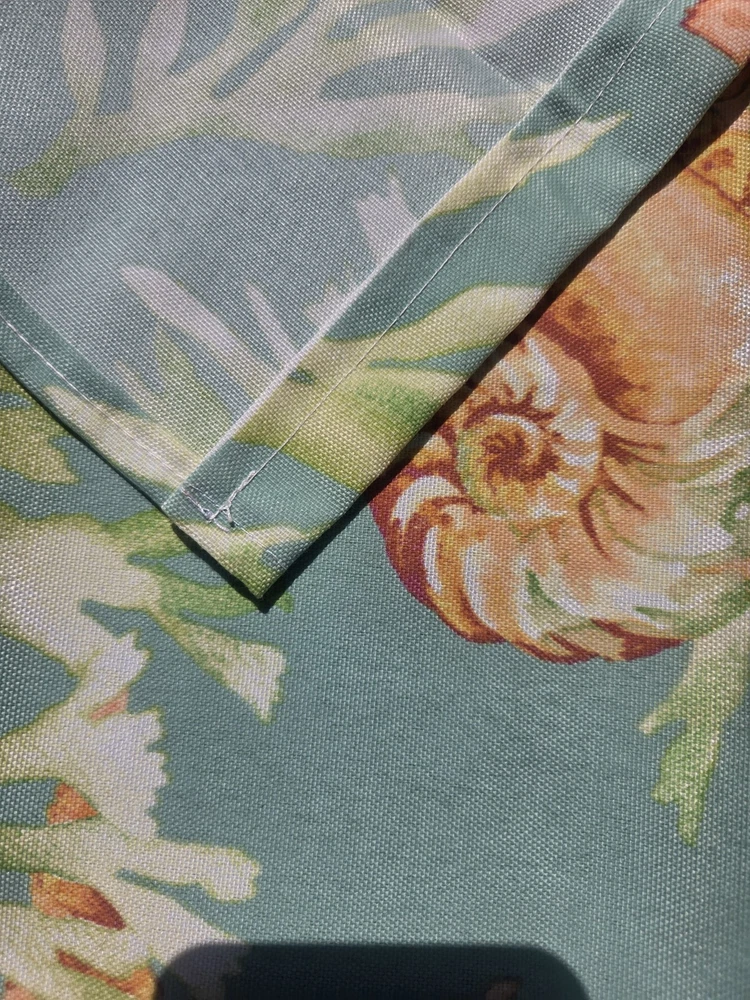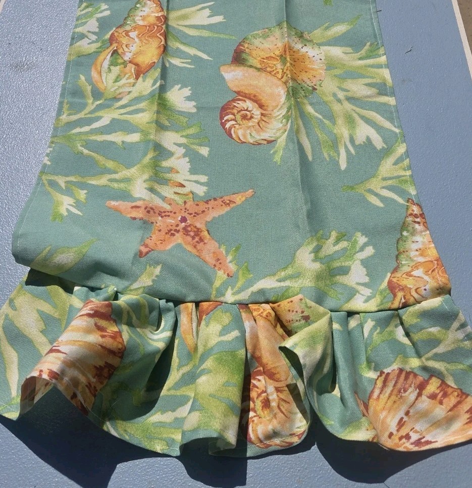 This handmade seashell valance window curtain is crafted from cotton fabric, featuring an opaque multicolored design with a seashell pattern. The curtain measures 27 inches in width and 16 inches in length, making it perfect for various rooms such as the living room, bedroom, or kitchen. Easy to care for, this unique and handmade curtain adds a touch of seaside charm to any indoor space, making it a stylish and functional addition to your home decor. Made in the United States, this valance curtain is sure to enhance the look of your windows with its creative design.