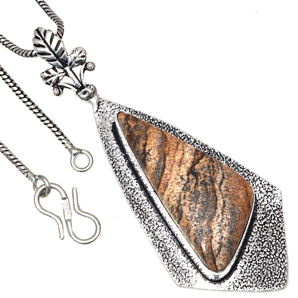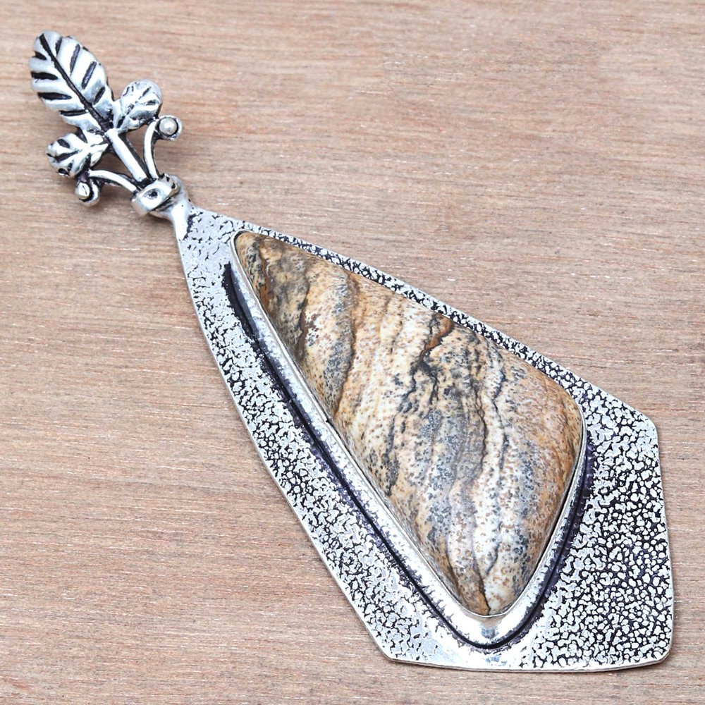 This stunning pendant is a must-have! The picture jasper gemstone has beautiful earthy tones, and the handmade silver setting adds elegance. Perfect as a gift—it feels luxurious yet natural. The craftsmanship is top-notch, and the 925 silver gives it a premium finish. Lightweight and versatile, it pairs well with any outfit. Love the unique, organic look—definitely worth it!