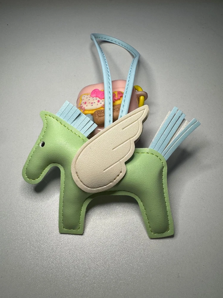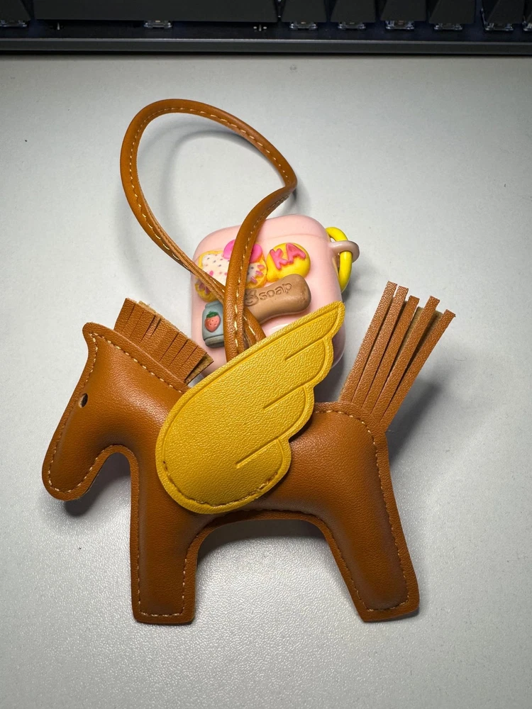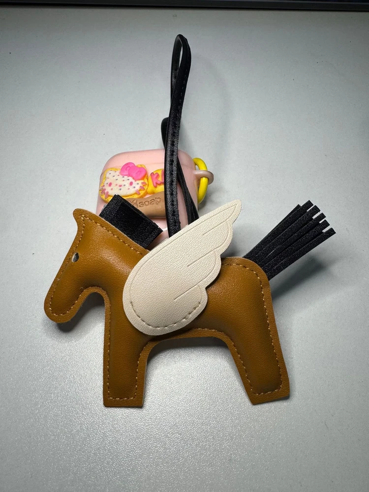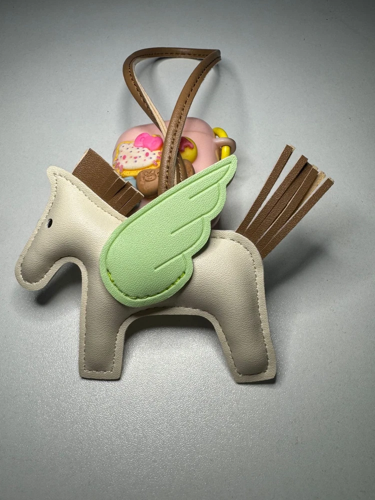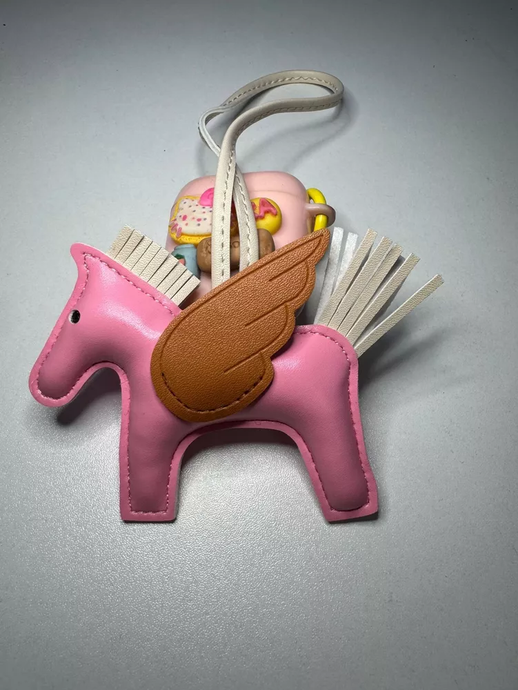Handmade Soft Leather Mini Rodeo Horse bag Charm With Swift Pegase Pendant