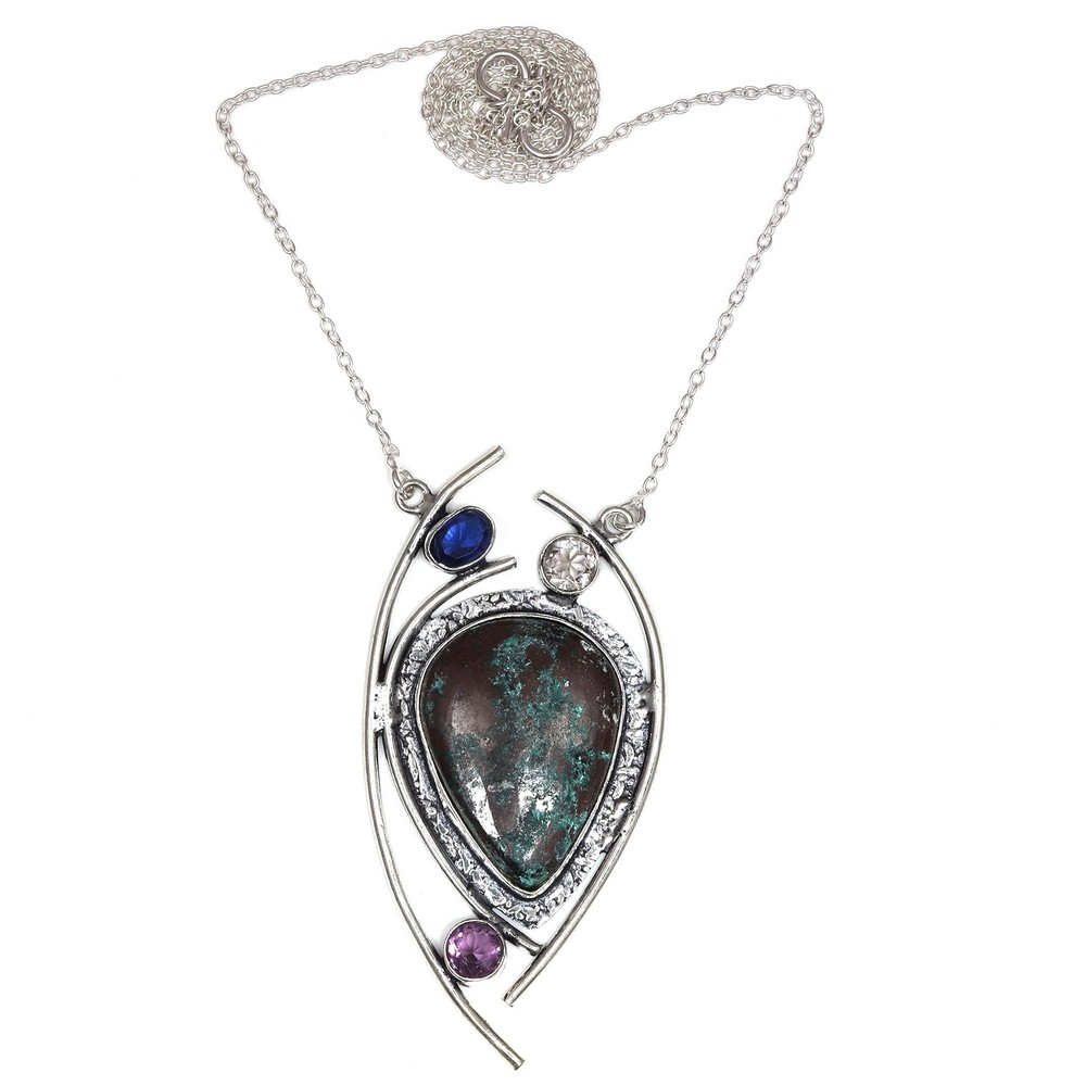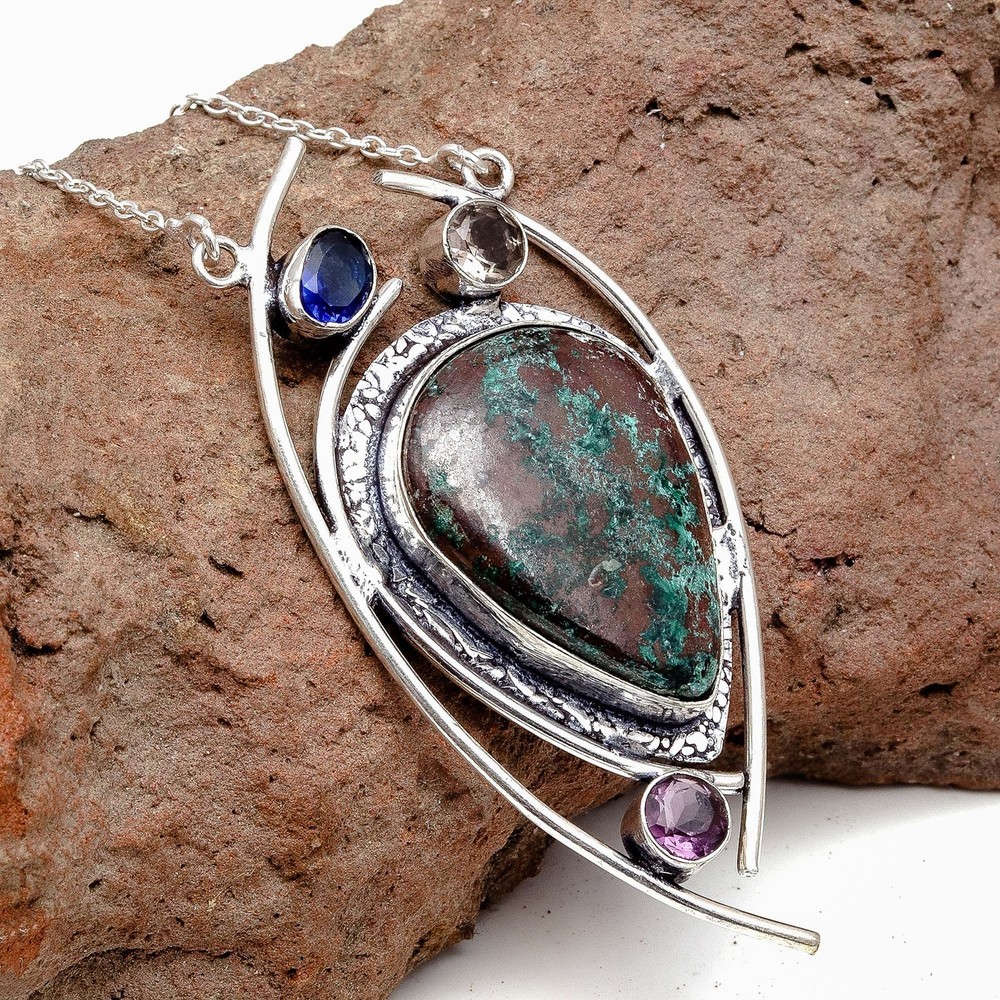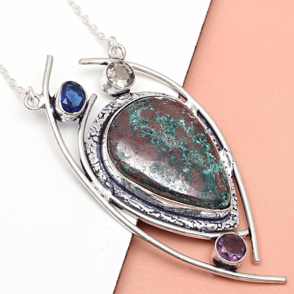 Absolutely stunning pendant! The chrysocolla gemstone has such vibrant colors, and the handmade sterling silver setting gives it a luxurious yet earthy feel. The craftsmanship is impeccable—lightweight but solid, with a beautiful polish. Perfect for adding a unique, bohemian touch to any outfit. Love that it’s made with genuine materials and ethical sourcing. A true statement piece!