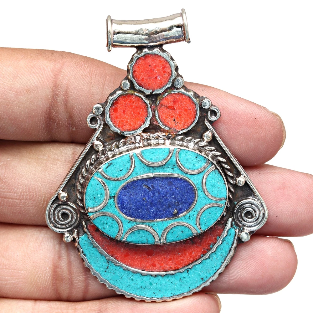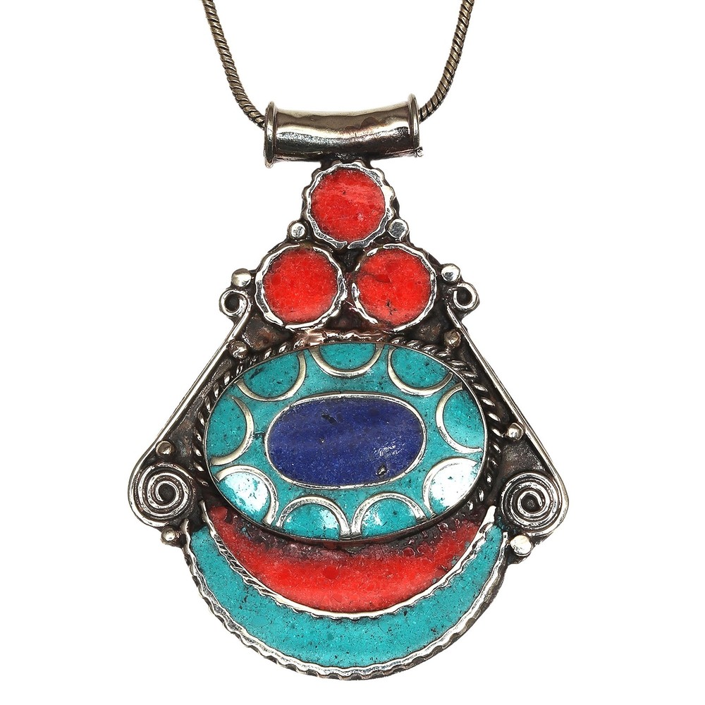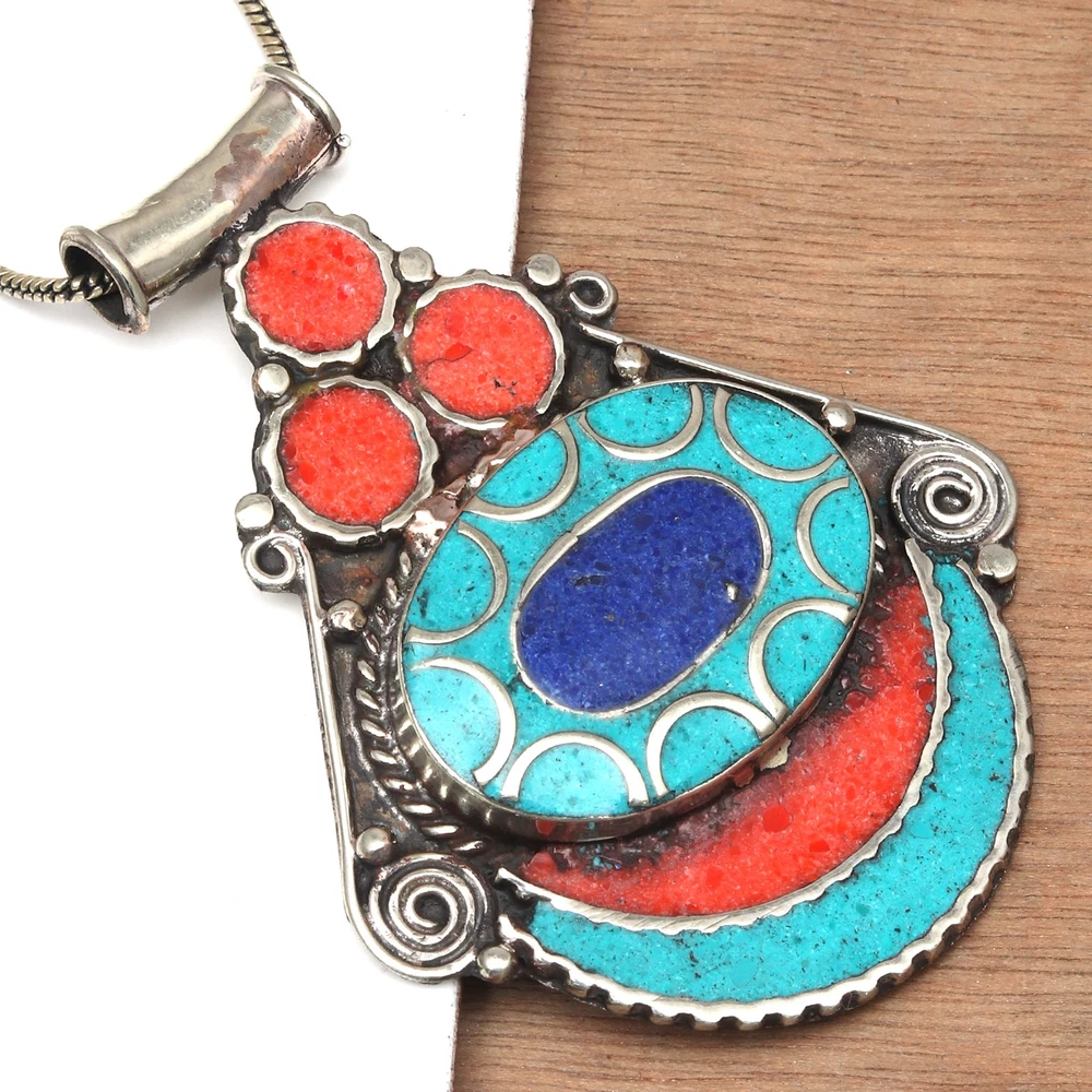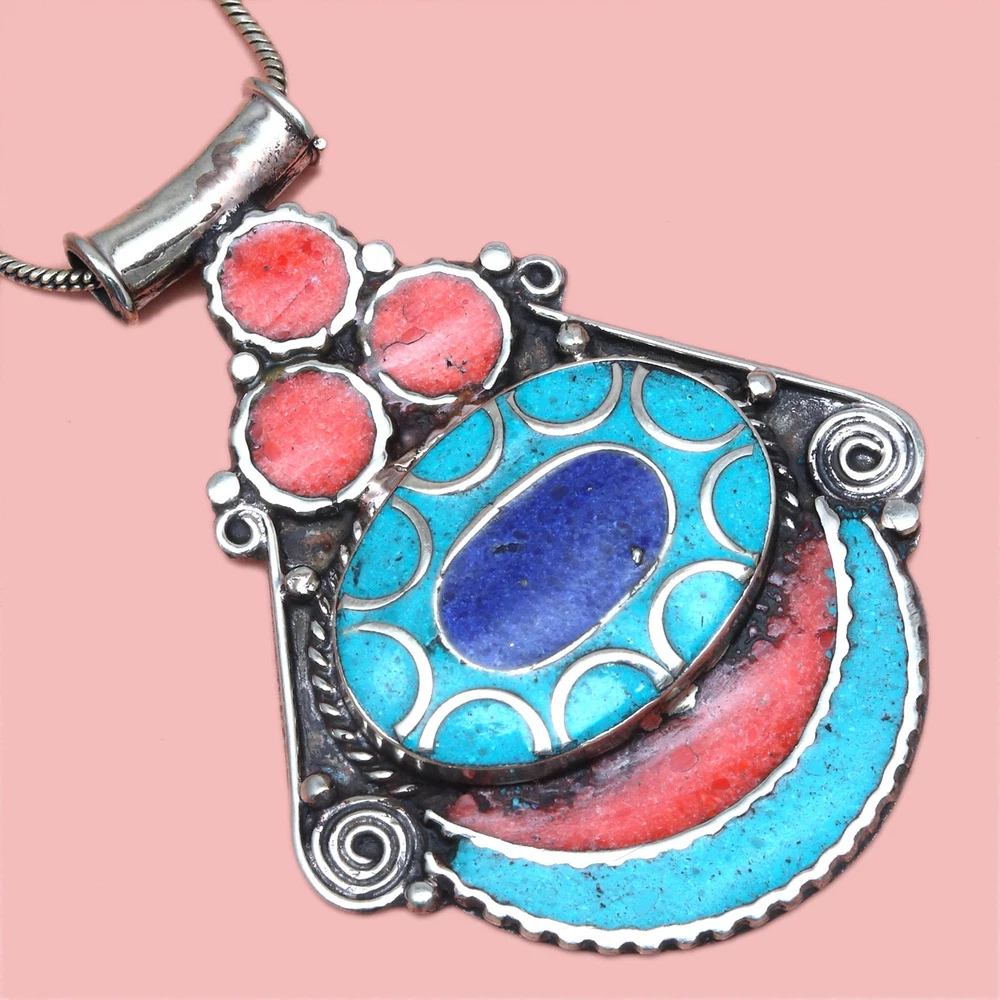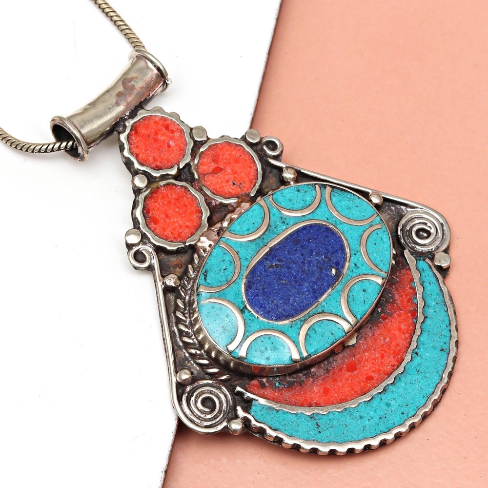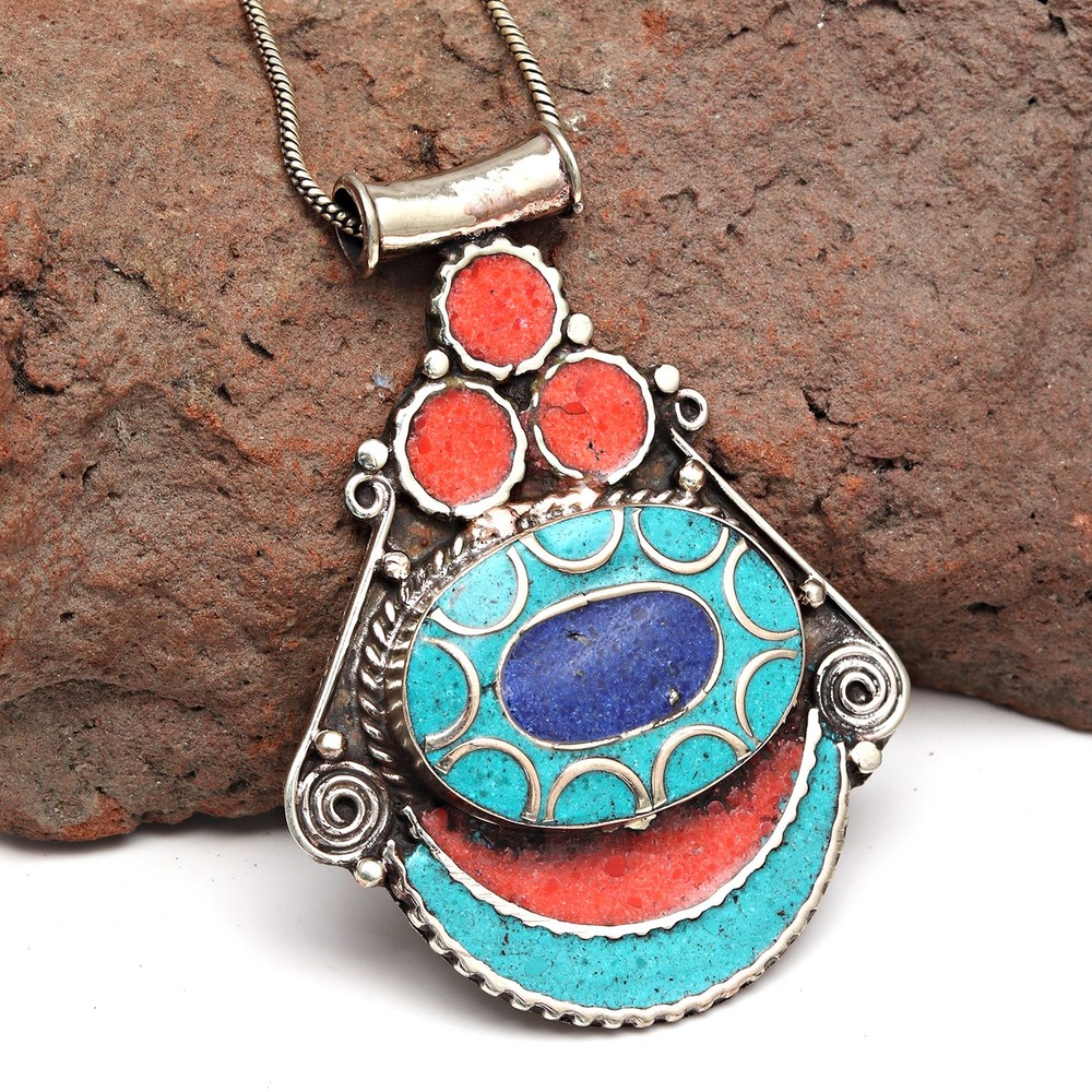 Occasion: Anniversary, Birthday, Christmas, Engagement, Mother's Day, Valentine's Day, Wedding Style: Pendant, Locket, Chain, Tennis Closure: Hook Main Stone Treatment: Not Enhanced UPC: does not apply Country/Region of Manufacture: India Number of Gemstones: 5 Seller Warranty: No Customised: No Features: Adjustable, Engraved, Stackable Customized: No gtin13: does not apply Colour: Multicolor Brand: Unbranded Pendant/Locket Type: Charm Necklace Length: 20 in Antique: Yes Main Stone Creation: Natural Country of Origin: India Theme: Beauty, Bohemian, Ethnic, Family & Friends Vintage: No Wholesale: Yes Cut Grade: Excellent Pendant Shape: Teardrop Metal: Silver Plated Color: Multicolor Item Length: 2.5 Gemstone Clarity Grade: Eye Clean Main Stone Colour: Multicolor Type: Pendant Setting Style: Bezel Handmade: Yes Main Stone Depth: 8 mm Metal Purity: Unknown Secondary Stone: Tibetan Turquoise Chain Type: Snake Era: Undated Material: Stone, Gemstone, Crystal, Cotton Base Metal: Brass Main Stone Color: Multicolor Main Stone: coral Main Stone Shape: Teardrop