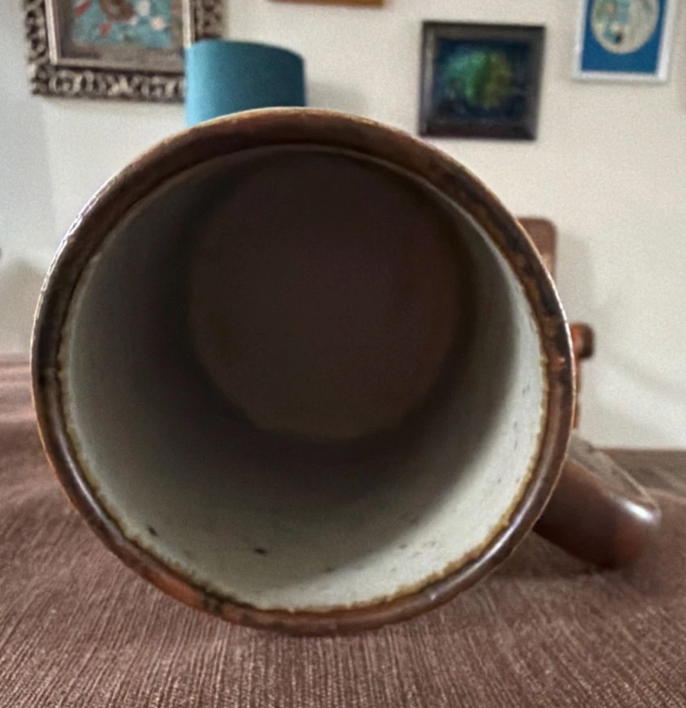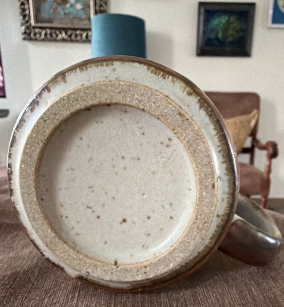 Style: Mid-Century Modern Color: Beige, Brown, Blue Shape: Round Type: Coffee Mug Finish: Matte Material: Ceramic Brand: Otagiri Features: With Handle Pattern: Horizon Department: Unisex Adults