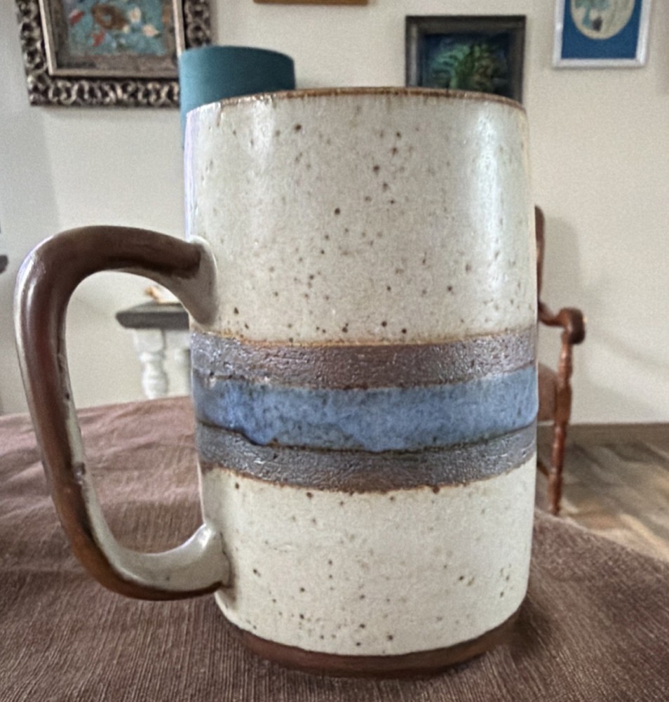 Handmade Vintage Otagiri pottery Mug Horizon Pattern Gorgeous Blue w speckles