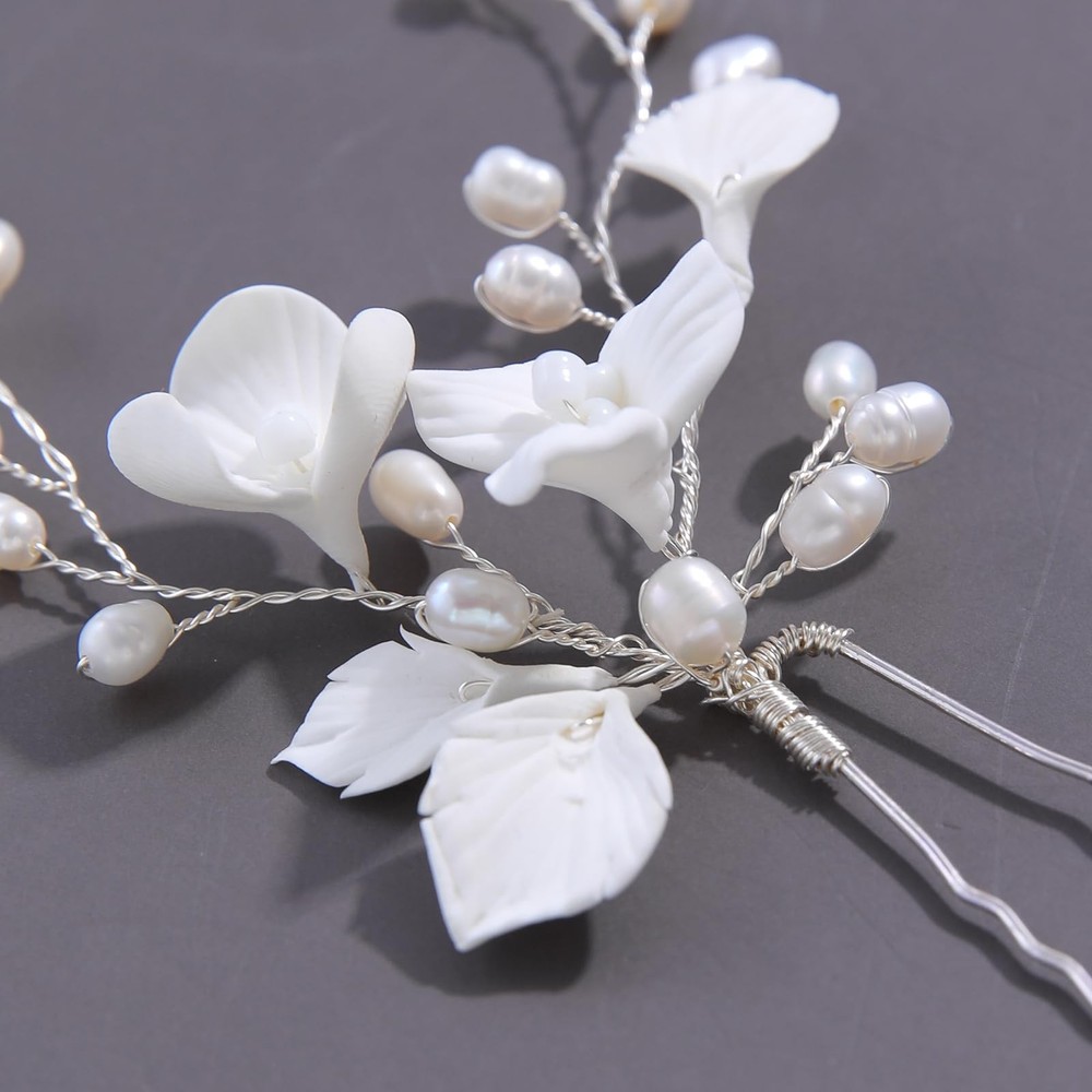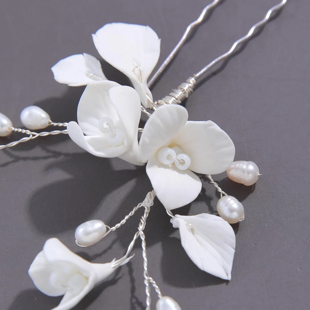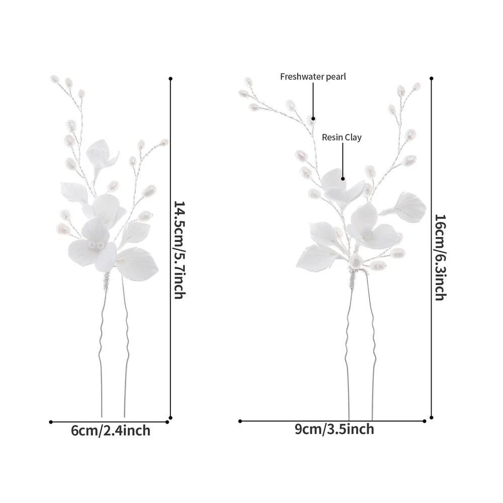 These exquisite bridal hair pins are the epitome of elegance and sophistication. Handcrafted with meticulous attention to detail, each pin features delicate 3D pinch flowers adorned with shimmering freshwater pearls that catch the light beautifully. These accessories are the perfect finishing touch for any bridal hairstyle, adding a touch of whimsy and romance. Whether you're the blushing bride or a cherished bridesmaid, these hair pins will elevate your look and make you feel like royalty on your special day. With their high-quality construction and timeless design, these hair pins are not only beautiful but also built to last, ensuring you can treasure them for years to come. Indulge in the luxury of these stunning bridal hair accessories and let your inner radiance shine through. Handcrafted Elegance: These exquisite bridal hair pins feature delicate 3D pinched white flowers adorned with lustrous freshwater pearls, adding a touch of ethereal beauty to your special day. Versatile Styling: The flexible wire stems allow for effortless shaping and positioning, enabling you to create stunning hairstyles that perfectly complement your bridal look. Timeless Charm: Crafted with meticulous attention to detail, these hair accessories exude a timeless charm that will never go out of style, making them a cherished keepsake for years to come. Ideal for Bridesmaids: Not just for the bride, these hair pins are perfect for bridesmaids, allowing you to coordinate a cohesive and elegant look for your entire bridal party. Quality Assured: Handmade with care using premium materials, these hair pins are designed to withstand the demands of your special day, ensuring they remain securely in place from ceremony to reception.