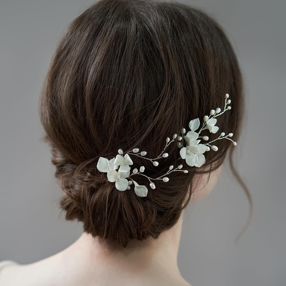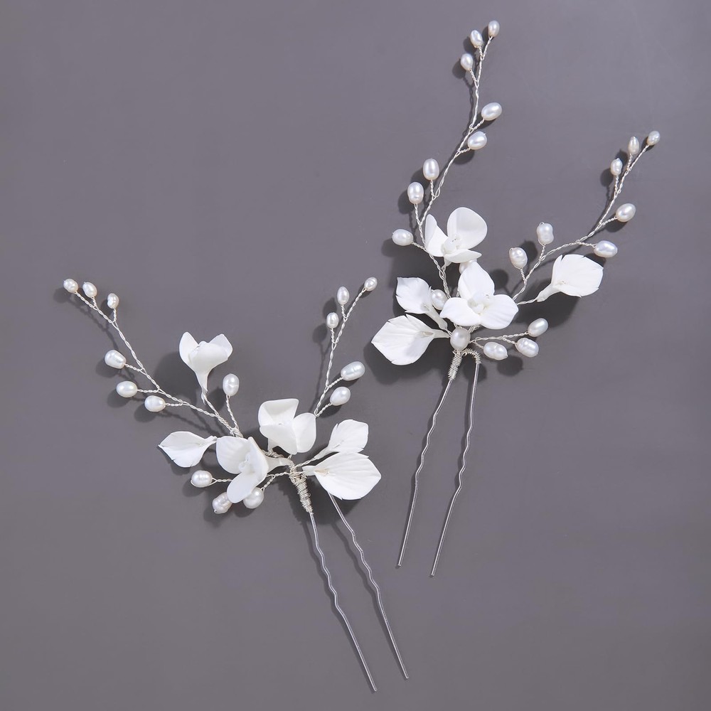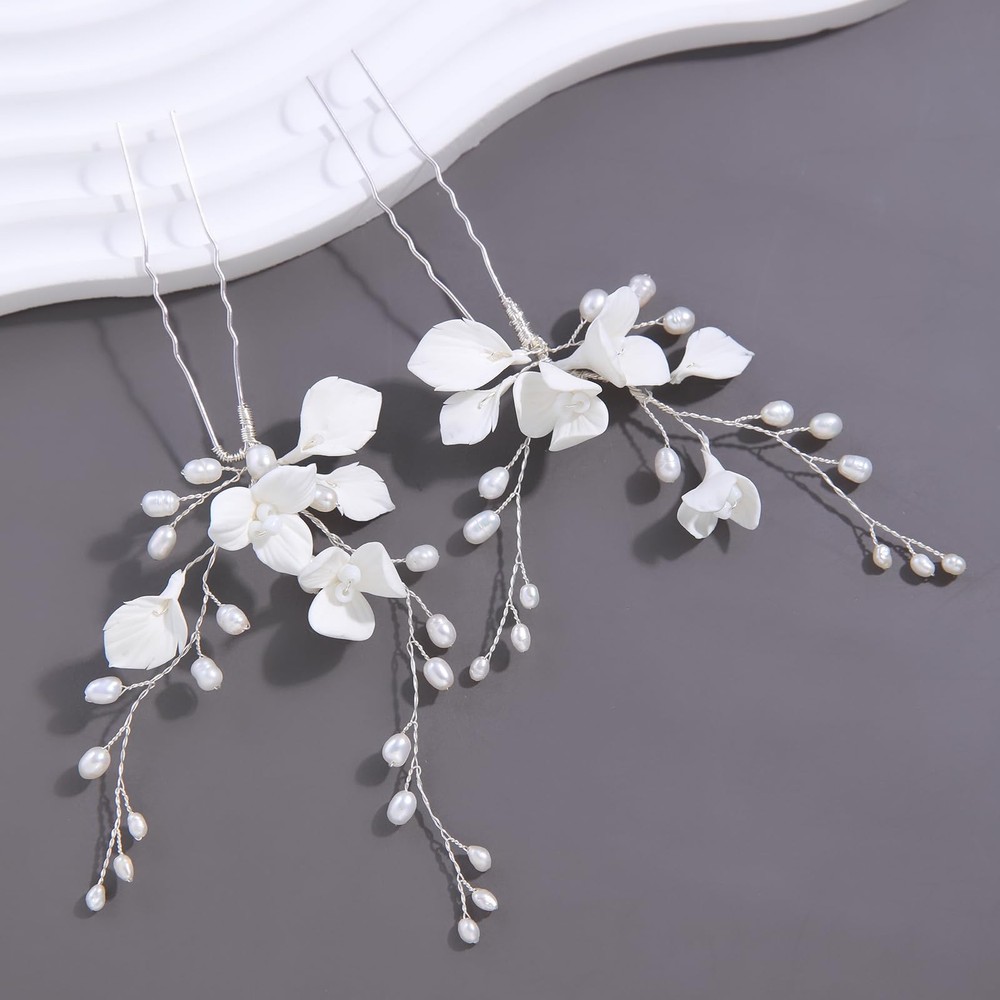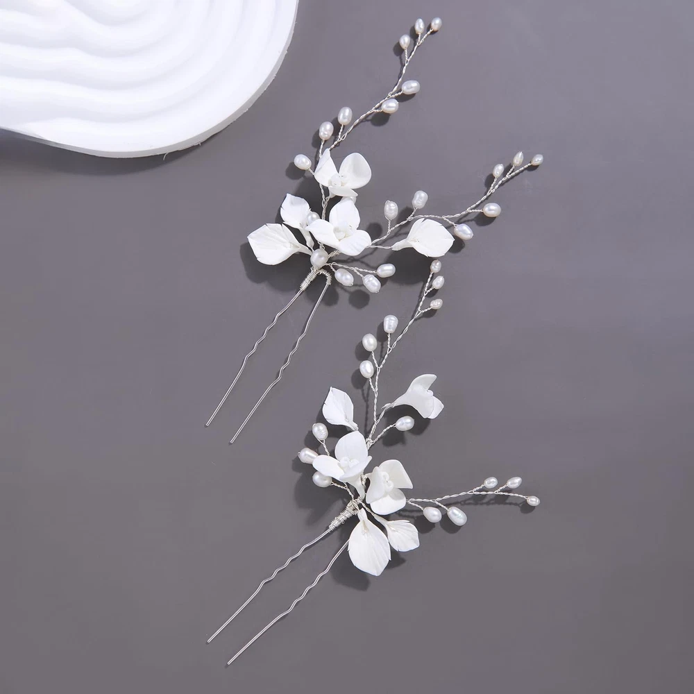 These exquisite bridal hair pins are the epitome of elegance and sophistication. Handcrafted with meticulous attention to detail, each pin features delicate 3D pinch flowers adorned with shimmering freshwater pearls that catch the light beautifully. These accessories are the perfect finishing touch for any bridal hairstyle, adding a touch of whimsy and romance. Whether you're the blushing bride or a cherished bridesmaid, these hair pins will elevate your look and make you feel like royalty on your special day. With their high-quality construction and timeless design, these hair pins are not only beautiful but also built to last, ensuring you can treasure them for years to come. Indulge in the luxury of these stunning bridal hair accessories and let your inner radiance shine through. Handcrafted Elegance: These exquisite bridal hair pins feature delicate 3D pinched white flowers adorned with lustrous freshwater pearls, adding a touch of ethereal beauty to your special day. Versatile Styling: The flexible wire stems allow for effortless shaping and positioning, enabling you to create stunning hairstyles that perfectly complement your bridal look. Timeless Charm: Crafted with meticulous attention to detail, these hair accessories exude a timeless charm that will never go out of style, making them a cherished keepsake for years to come. Ideal for Bridesmaids: Not just for the bride, these hair pins are perfect for bridesmaids, allowing you to coordinate a cohesive and elegant look for your entire bridal party. Quality Assured: Handmade with care using premium materials, these hair pins are designed to withstand the demands of your special day, ensuring they remain securely in place from ceremony to reception.