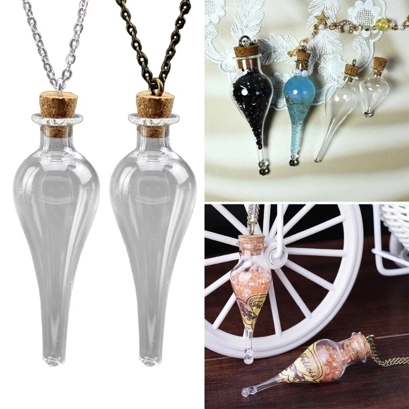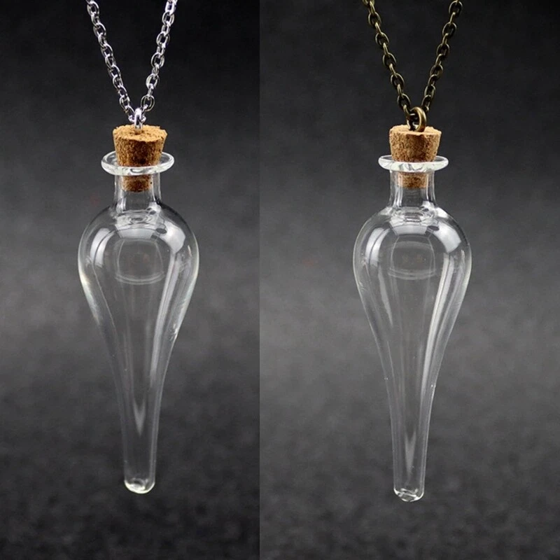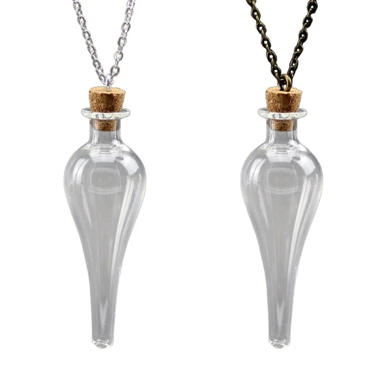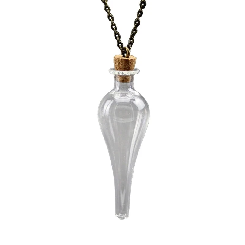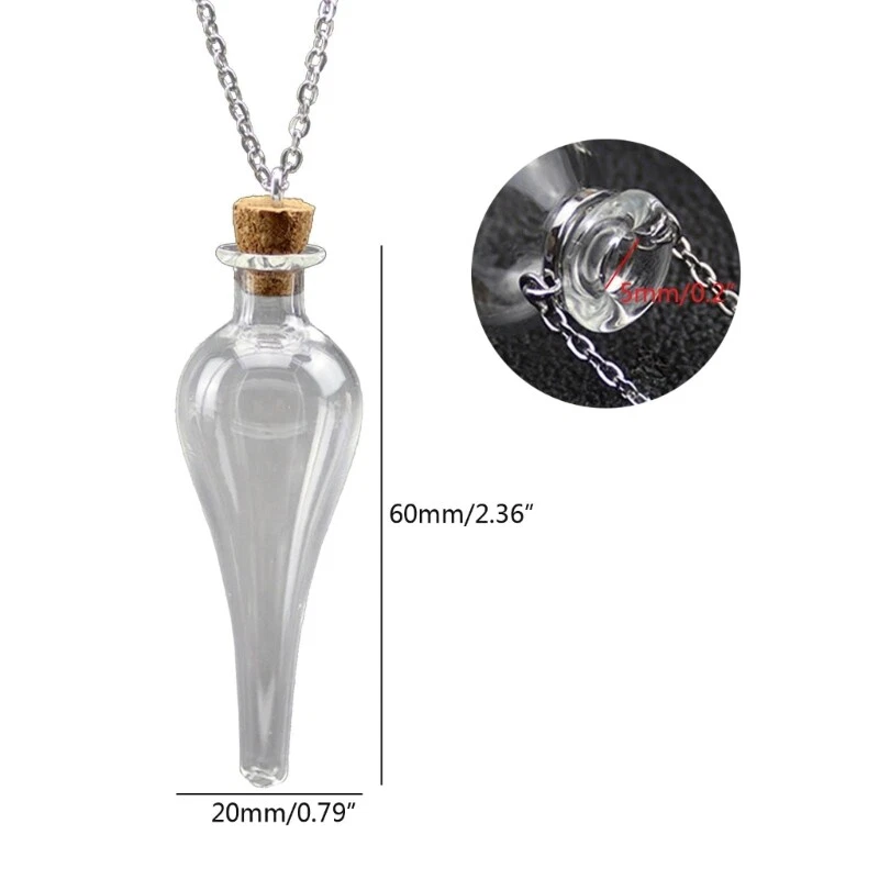 Features: Elevate your with our vintage glass bottle wishing drifting bottle necklace, a unique and enchanting piece that adds touches of to any outfit. Crafted from glass, this necklace features a cork stopper and water drop amulets that exude vintage charm and allures. for anyone who loves street-style fashion and seeks to show their individuality through accessories that stand out. Wear it on a casual day out or pair it with a outfit for a night, this necklace is versatile and fashionable for any occasion. Let the of the bottle bring you luck and good fortune as you wear it close to your heart, great for gifting to friend and loved ones who appreciate one-of-a-kind jewelry pieces. Various wishing decorations such as loose beads, dried-flowers, and imitation diamonds can be placed inside the bottle, as well as storing liquids such as perfumes and essential oils. Specifications: Glass Main Stone Color: Silver, Bronze(optional) Bottle Size: Approx. 20x60mm/0.78x2.36inch Package Includes: 1x Bottle DIY Necklace note: Please allow 1-2cm errors due to manual measurement. Please allow for slight color differences due to different display resolution.