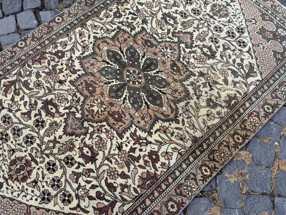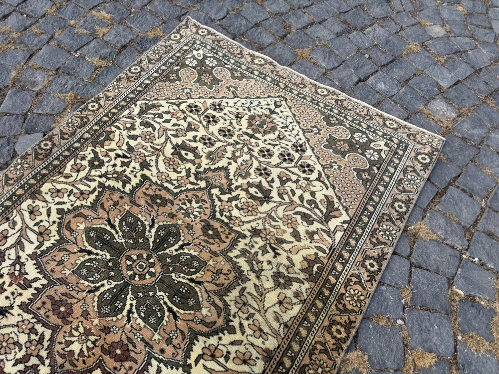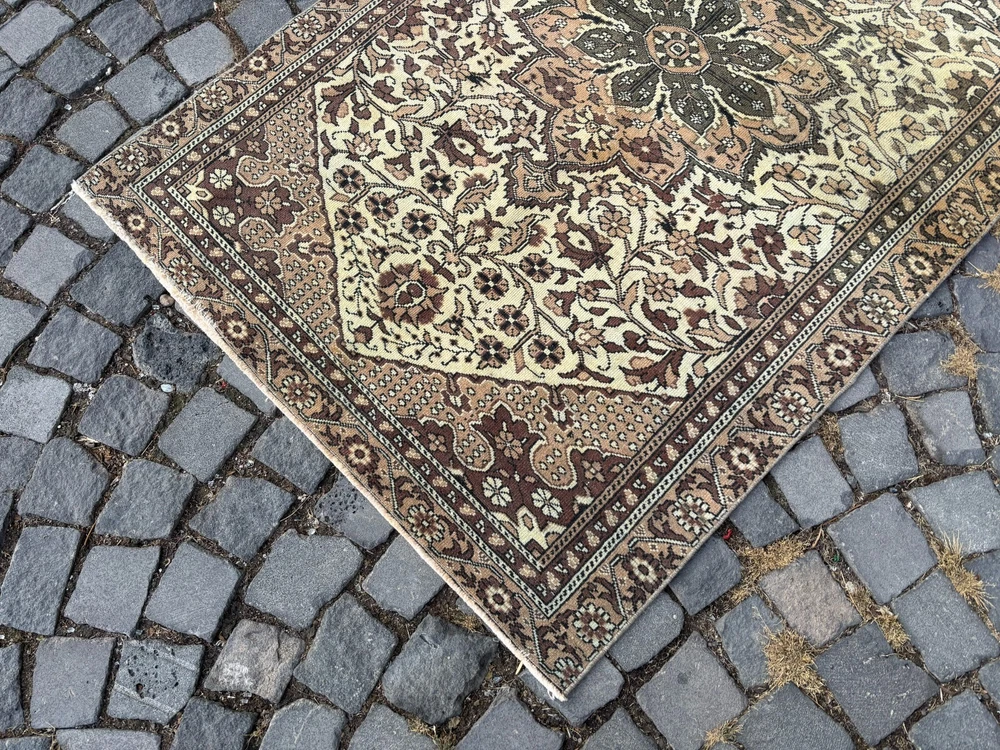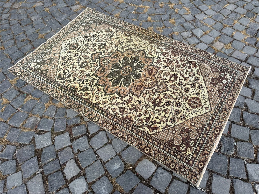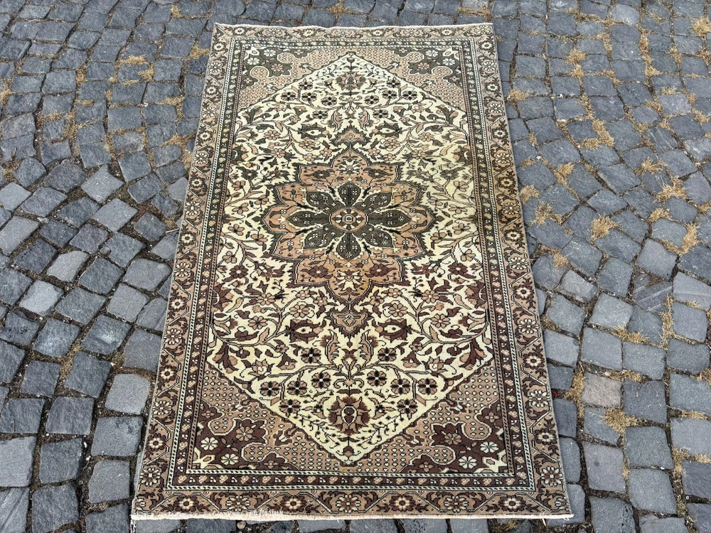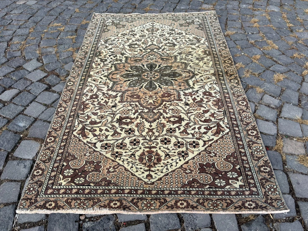 An old (approximately 45-60 years old) hand knotted / hand woven Turkish rug from the Middle Anatolian Region and made of genuine, high quality wool, in natural colors. Our distinguished Antiques and Vintage rugs, each with its own unique story, have been carefully selected from every corner of Turkey. RUG DETAILS * One-of-a-kind vintage rug * Dimensions: 3,4 x 5,6 ft = 41 x 67 inc = 105 x 171 cm * Low pile: approximately 0.2"(0.5 cm) * Dyed with natural dyes * Product code : AA 1307 SHIPPING * Free shipping on all items. * Usually shipped via FedEx or UPS. * Item will be ready for shipment within * Estimated delivery 3-5 business days 1-3 business days with a tracking number. All of our rugs have been professionally cleaned and ready to ship before being listed. These unique vintage rugs have normal wear related to their age. We believe this adds to the authenticity of these hand-woven beauties. We inspect all rugs carefully before Shipping, but in the unlikely event that due to our fault, the goods are not fit for purpose, damaged/defective, or we ship the wrong item, we will issue a 100% refund. We are a team of experienced professionals who are dedicated to ensuring your items arrive safely. Please note that our photos accurately represent the colors of the rug, however it may look different in the light in your home or against different colored floors. We are so excited to share the beauty and art of rugs with you and to see how your personal spaces transform! I do my best to build a great experience in online rug shopping for you, just look at the reviews. Please feel free to write me over conversation if you have any questions about the rug or price. I will be happy to answer to you. Thank you, Yusuf.