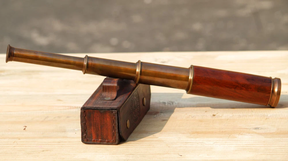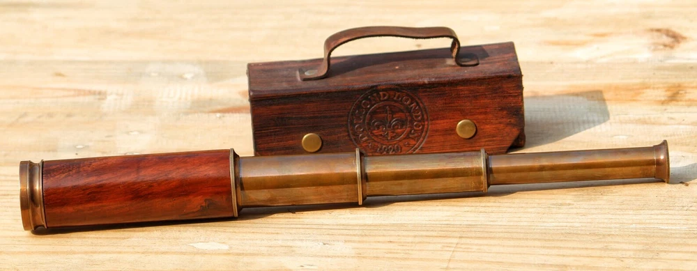 Handmade Working Telescope Custom Engraved, Pirates Spyglass, Gift For Husband, Anniversary Gift, Boating Gift, Gift For Him Materials: Brass, Glass, Wood, Leather DESCRIPTION OF PRODUCT These Beautifully Crafted, Handmade, Solid Brass Telescope have been Manufactured to Reflect the Workmanship and Materials of a more Elegant Bygone age. All feature high Quality fully Coated Optics Making them Highly Functional Products. All Models Provide Correct images, So can be Used for Terrestrial viewing Because It Focuses and Magnifies due to the Excellent Optics for real Viewing. A Premium Quality Brass Wooden Telescope With Leather Box, Royal Navy Spyglass, Handheld Telescope, Pirate Scope, Boating Gift, Graduation Gifts, Gift For Him. It Comes With Leather Case , Plain Wooden Box , Engraved Wooden Box. You Can Chose Case Options From List while Making Order. Size Of Telescope - 15 Inch [ 38 Cm] Full Extend ! 6 inch [ 15.24 Cm] When Folded Material - Brass, Leather, Wood Finish- Premium Brown Antique Finish Put Your Engraving Instruction In Box, Telescope Can be Engraved 4 Side Because 1 Side Is On Wooden Part, Each Side Can Have 200 Characters Or 2 to 3 Lines . Wooden box can also be engraved Up to 400 Characters Or more