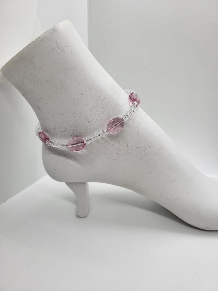 Handmade w/ Swarovski Crystal Light Rose Oval & Round Beaded Anklet; Custom Size