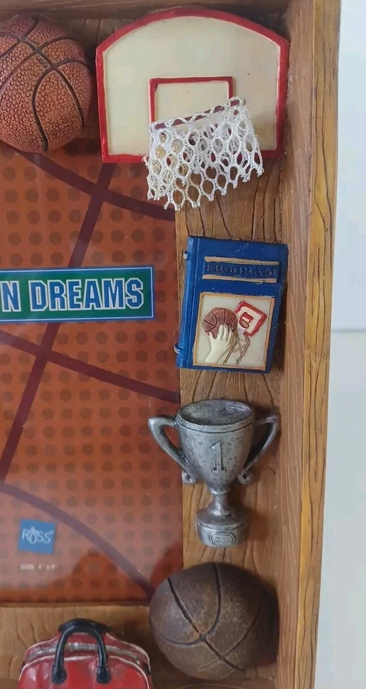 Handpainted Hoops ‘n Dreams” 3D basketball shadowbox photo frame by Russ Berrie.