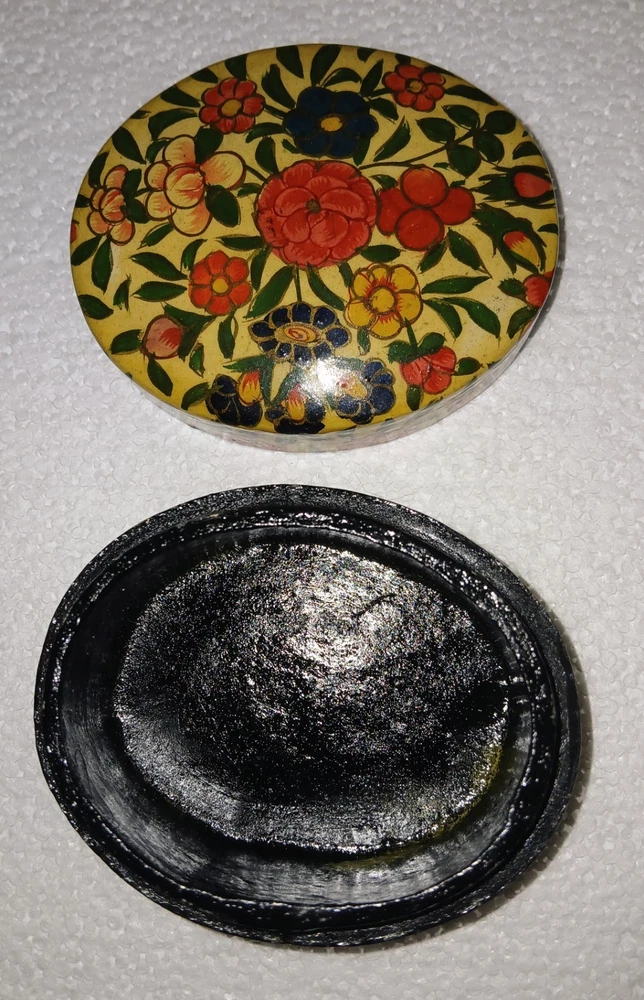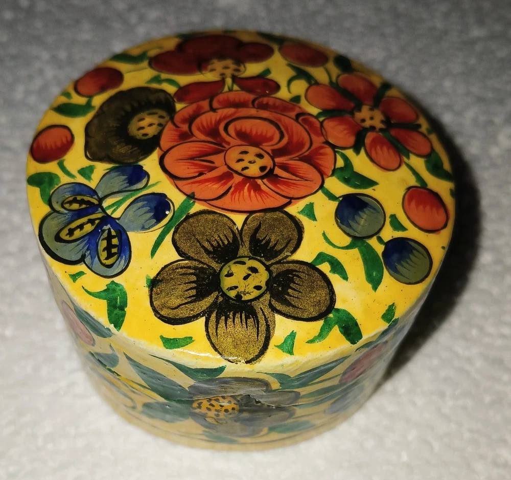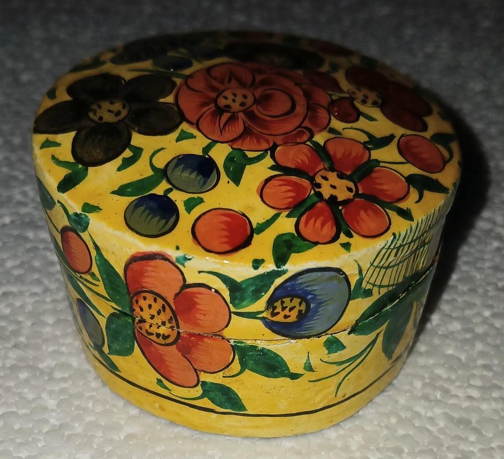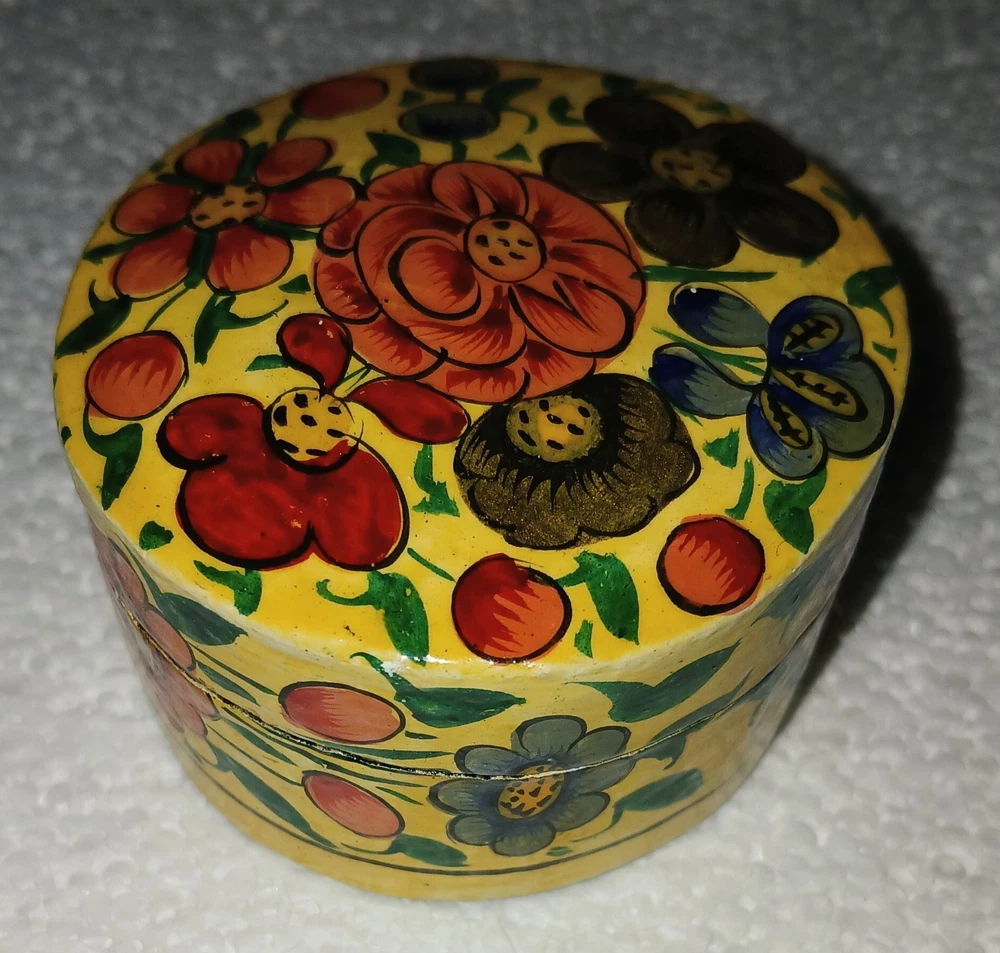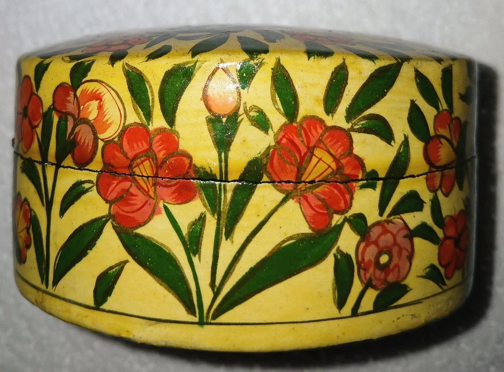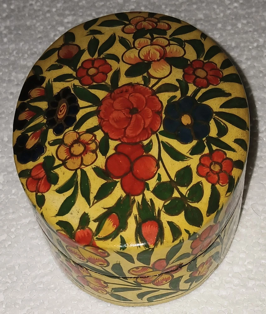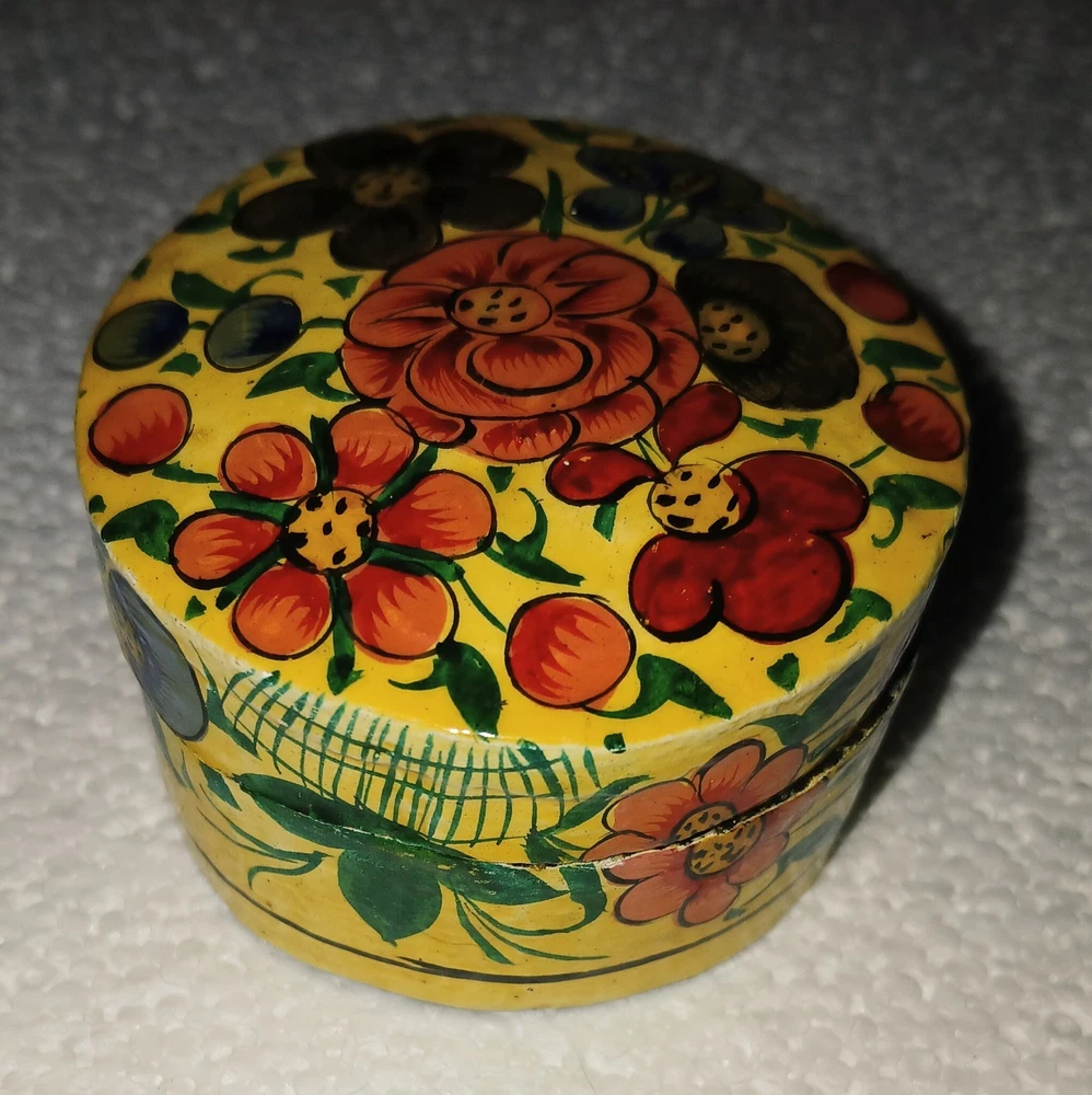 Hand-Painted Vintage Kashmiri Paper Mache Trinket Box Lacquered