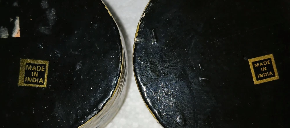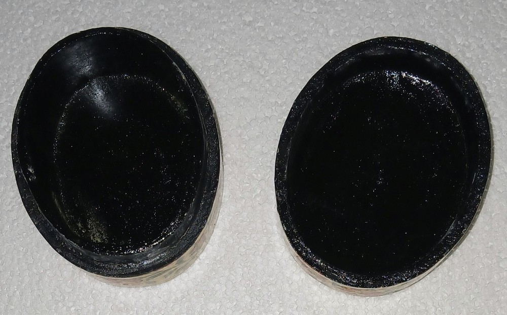 (2) KASHMIR INDIA TRINKET BOXES 1.) PLEASE CHECK THE EXPECTED DELIVERY DATES 2.) PLEASE BE PATIENT, there's a longer handling time on my auctions, but I try to ship faster... I work around chemo, dialysis and I'm mostly paralyzed so I rely on family members in their spare time for all of my shipping+ THERE IS ABSOLUTELY NO WHITE ON THIS PIECE, ANY AND ALL WHIT E IS GLARE 3.) (2) KASHMIR INDIA LIDDED TRINKET BOXES 4.) LARGER ONE MEASURES 3-1/8" X 2-3/8" X 1-3/4", SMALLER ONE MEASURES 2-1/4" X 1-3/8" 5.) HAND PAINTED AND LACQUERED 6.) BOTH ARE IN EXCELLENT CONDITION WITH VERY BRIGHT VIBRANT COLORS 7.) I DO COMBINE SHIPPING AND ANY OVERPAID AMOUNT IS REFUNDED ***