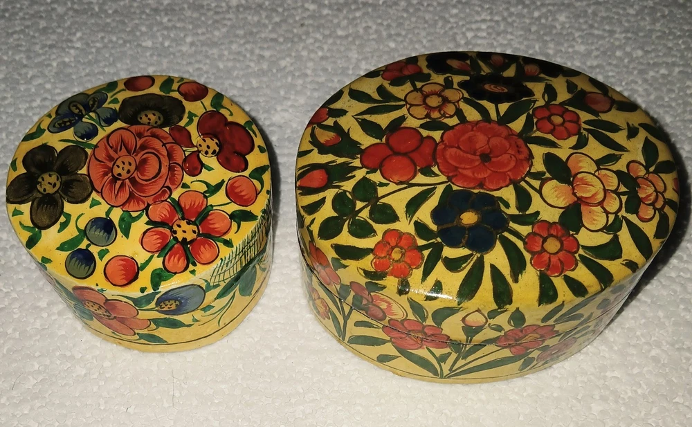$ 5.28Hand-Painted Vintage Lacquered Paper Mache Trinket Box Set Kashmir India