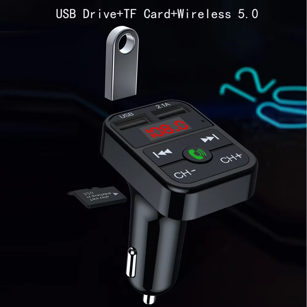 Features: Rated operating voltage: DC12V-24V Working Voltage limits: 9-26V USB1 Output: 5V/2.1A USB2 Output: 5V/1.0A , read USB Flash music. Support Play format: MP3 Bluetooth Version: Version 5.0+EDR Bluetooth transmission distance: 10M Bluetooth microphone effective range: 0.5-2M FM transmission frequency: 87.5-108Mhz Package included: 1 x Bluetooth Car MP3 Player