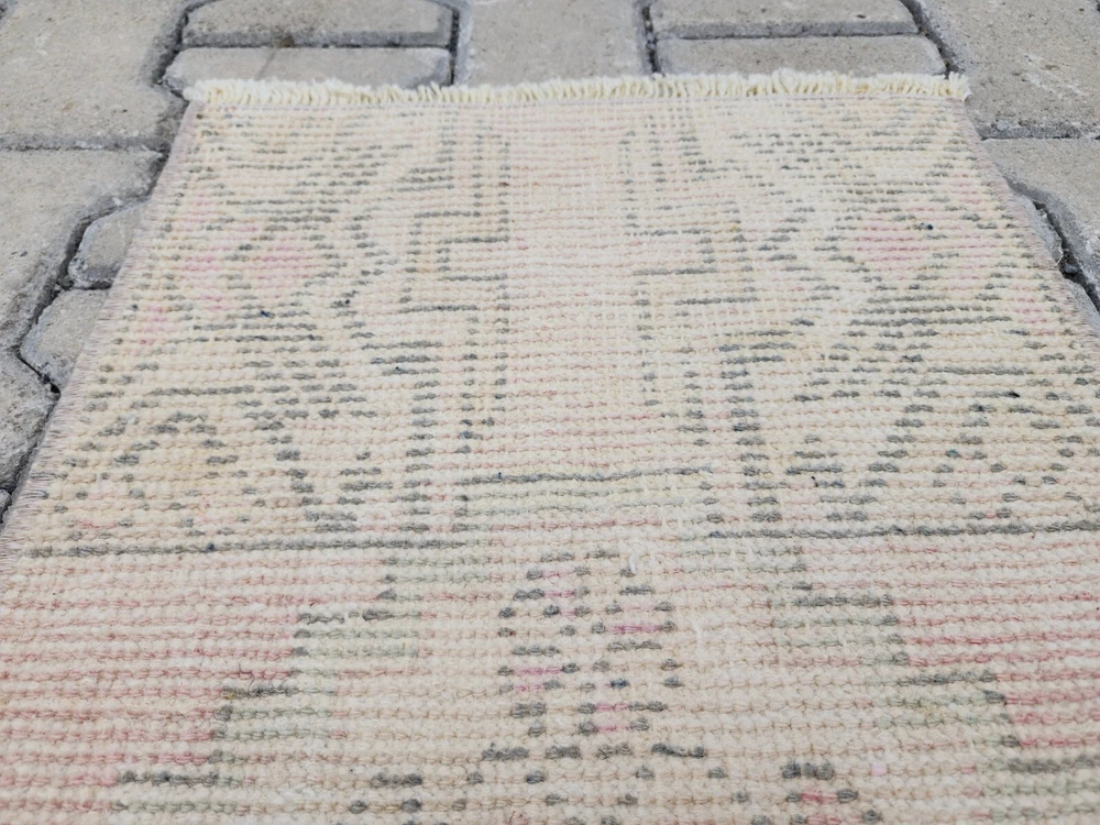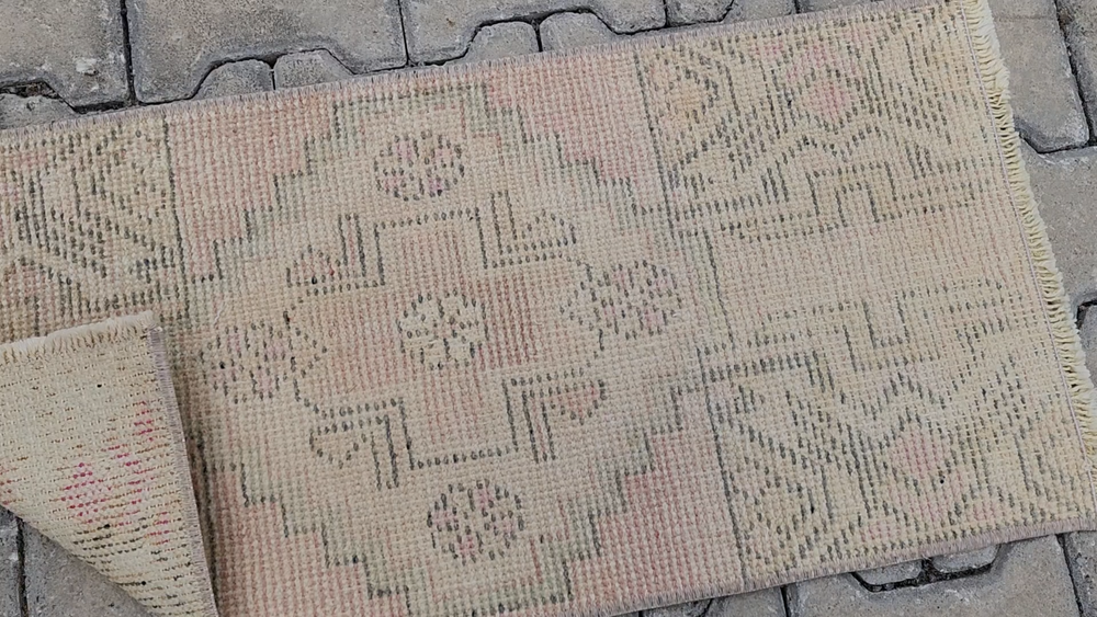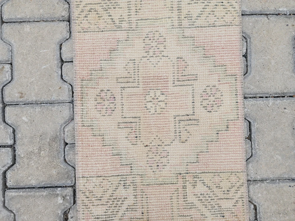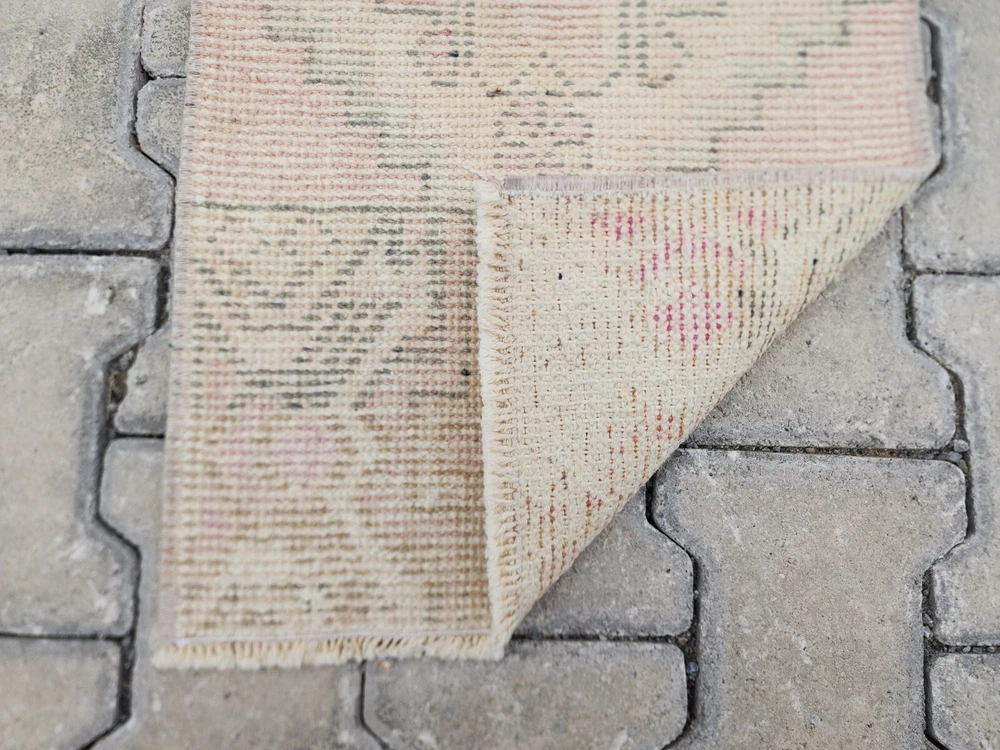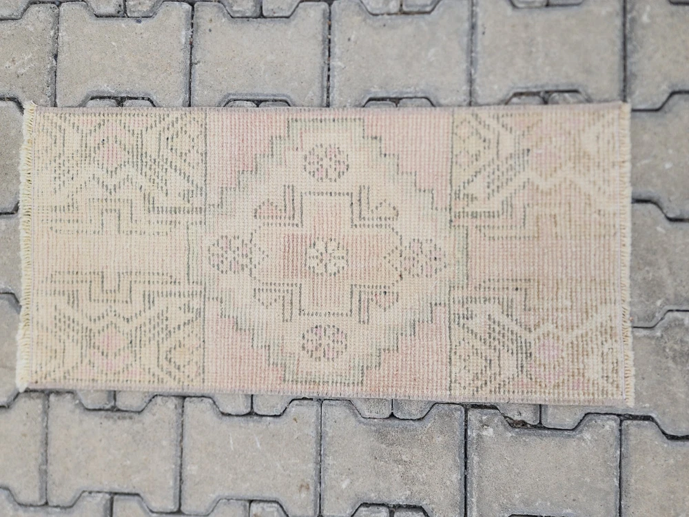Türk Vintage Halısı – Soluk Yıldız Madalyonlu, Krem ve Pastel Tonlarda | El Dokuma Boho Halı Bu el dokuması Türk vintage halısı, soluk krem zemin ve pastel detaylarıyla yumuşak bir "distressed" (eskitilmiş) görünüm sunar. Büyük olasılıkla Uşak veya Yörük dokuma geleneğine ait olan bu parça, kültürel zanaatkârlığı minimalist zarafetle birleştirir. Boho, shabby chic veya nötr tonlardaki dekorasyonlara mükemmel uyum sağlar. 🎨 Renk Paleti Ana Renk: Solmuş krem-bej Detay Tonları: Pastel pembe, açık yeşil ve yumuşak grimsi tonlar Renkler bilinçli olarak yıkanmış ve soluk tutulmuştur; bu sayede ortama sıcaklık ve yumuşak bir doku katar. 🧵 Desen Detayları Halının merkezinde yıldız benzeri büyük bir geometrik madalyon yer alır. Etrafında dört küçük rozet (çiçeksi) motif bulunur. Üst ve alt uçlarda üçgen köşe süslemeleri vardır. Desenler oldukça sade ve yumuşak geçişli pastel tonlarla dokunmuştur. 🧶 Zanaatkârlık ve Stil Bu otantik Türk halısı, geleneksel yöntemlerle ve doğal yün kullanılarak el dokuması olarak üretilmiştir. Soluk görünümü ve pastel paletiyle sade ama sıcak bir atmosfer yaratır. Ürün Özellikleri 📌 Menşei : Türkiye – Uşak / Yörük bölgesi 📌 Malzeme : Doğal yün, bitkisel boya 📌 Dokuma : El dokuması vintage halı 📌 Durum : Eskitilmiş görünümde, iyi korunmuş 📌 İade Politikası : 30 gün içinde iade garantisi 📏 Ölçüler ➡ Genişlik: 40 cm ➡ Uzunluk: 82 cm 📦 Kargo & Teslimat 🚀 1–3 iş günü içinde ücretsiz kargo 🌍 Tüm dünyaya güvenli ambalajla gönderim 💬 Detaylı fotoğraflar veya daha fazla bilgi istersen bizimle iletişime geçebilirsin. Yardımcı olmaktan memnuniyet duyarız!