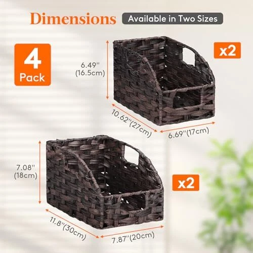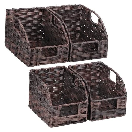Return Policy Fast Delivery Trusted seller Handwoven PP Wicker Storage Basket, Waterproof Imitation Rattan Basket with Built-in Handles, Trapezoid Baskets for Organizing Shelves, Pantry, Black Walnut, 2-Pack (Large+Medium) Product Description Premium Durability: Crafted with high-quality handwoven PP wicker and reinforced with a thickened metal inner frame, the wicker storage basket ensures exceptional sturdiness and longevity Four-Piece Set: This set includes four baskets, available in two sizes: 7.87 × 11.8 × 7.08 inches and 6.69 × 10.62 × 6.49 inches provides versatility and convenience; Each imitation rattan basket is handmade, so slight variations in size may occur Versatile Use: These woven baskets are ideal for storing spices, vegetables, canned goods, snacks, books, games, media, toilet papers, hand towels, and laundry supplies; Perfect for kitchens, pantries, living spaces, bathrooms, and laundry rooms Waterproof Material: Treated with waterproofing, these trapezoid decorative baskets can be easily rinsed with water and are especially suitable for areas with high humidity, such as the kitchen, bathroom, and laundry room Easy to Use: Each basket has three built-in handles allowing for easy carrying and moving from the front or sides; The trapezoidal design ensures that items are easily visible and accessible; When not in use, the shelf baskets can be stacked to save space Shipping Returns Payment Shipping Shipping is FREE to all addresses other than APO/PO boxes in the lower 48 states. All our stock ships from US-based warehouses. Shipped via USPS or UPS (depending on location and package weight) Unless stated otherwise, all orders will ship within 24-72 hours of your payment being processed. Check our feedback to see the great reviews of FAST shipping we offer. Returns Seller does not accept returns Payment We currently accept payment via eBay managed payments only. Once payment is cleared, we will dispatch your shipment within 1-3 business days. Please refer to the "Shipping" tab for more information regarding shipping speed to your destination.