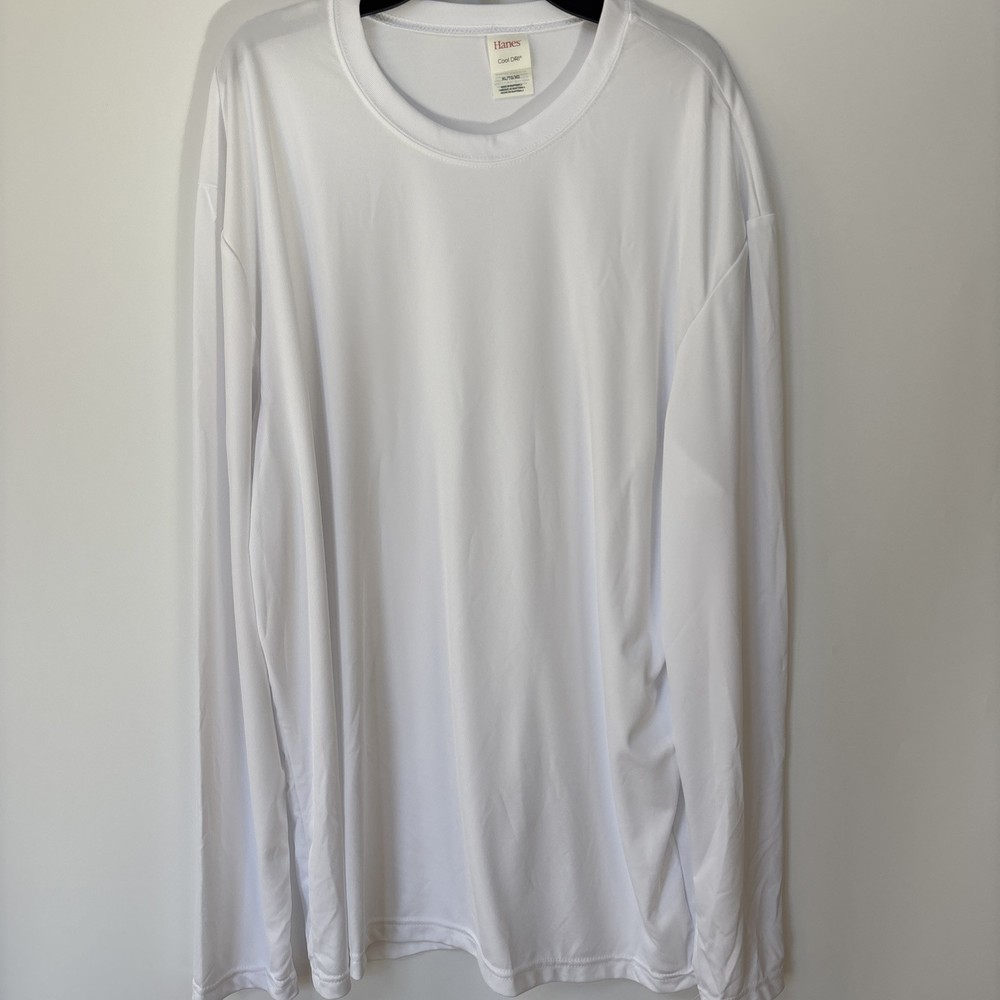 This is a pack of 2 Hanes Men's Cool DRI Long-Sleeve Performance T-Shirts in size XL. The shirts feature a crew neck, long sleeves, and are made of polyester with moisture-wicking properties. They are designed for activewear use and come in a solid white color. The fit is regular, and the style is basic with a sports theme. These shirts are ideal for men looking for comfortable and functional activewear tops.