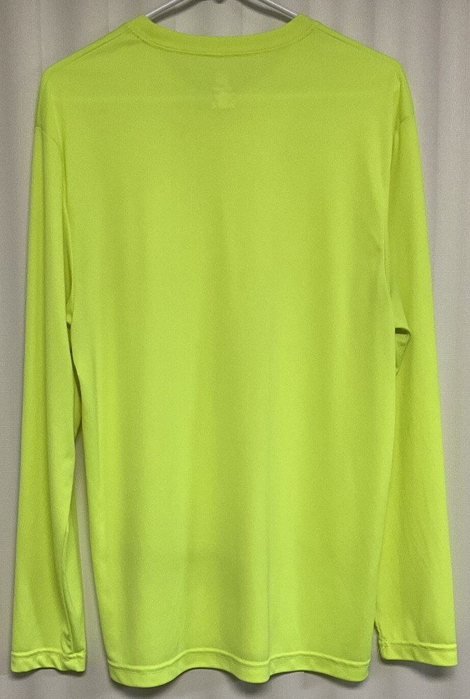 This Hanes Cool Dri T-Shirt is perfect for any man looking for a comfortable and stylish shirt. The neon yellow color adds a fun pop of color to any outfit. The long sleeves make it perfect for cooler weather, while the regular size fit ensures a comfortable and flattering look. Made by the trusted brand Hanes, this T-Shirt is sure to become a staple in any wardrobe. Whether you're looking for a casual shirt to wear out or a comfortable piece to wear in, this Hanes Cool Dri T-Shirt is the perfect choice. Chest is 40 inches.