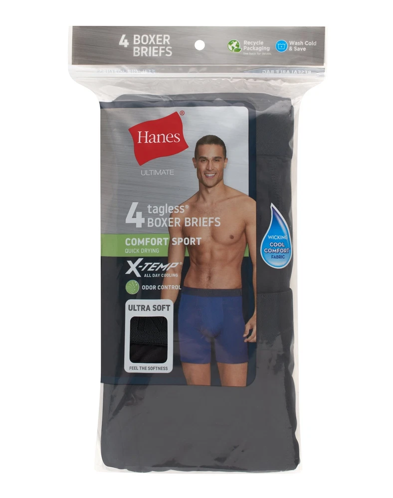 60 DAY RETURNS FREE SAME DAY SHIPPING MEN WOMEN BOYS GIRLS SHOP BY BRANDS Hanes Playtex Champion Bali Just My Size Barely There Wonderbra L'eggs Hanes Hosiery Maidenform Lilyette Hanes Ultimate Comfort Sport Men's Performance Stretch Boxer Brief Underwear Hanes Ultimate Comfort Sport Men's Performance Stretch Boxer Brief Underwear Style : Item Description BUILT FOR PEAK PERFORMANCE Engineered to redefine your comfort and enhance your everyday performance, Hanes Ultimate Comfort Sport Men’s Boxer Briefs are a top choice. Loaded with essential features like Cool Comfort® moisture-wicking fabric and X-Temp™ technology designed to adapt to your temperature - this men’s underwear is ready to go as hard as you do. Crafted from polyester, the ultra-soft fabric offers a hint of spandex, providing an additional boost of stretch. No-ride-up legs stay comfortably in place, while built-in odor control helps keep you feeling fresh all day long. Our Tagless® design eliminates the irritation caused by tags, and with a convenient 4-pack, you’re getting exceptional value without compromising on quality. Whether you’re pushing through a rigorous gym session or tackling your daily tasks, rest assured these men’s boxer briefs have you covered. VALUE PACK - These men’s performance boxer briefs are available in a convenient 4-pack of men's black boxer briefs. FEEL THE SOFTNESS - Ultra-soft fabric feels great against the skin, perfect for everyday wear and beyond. FLEXIBLE FIT - A touch of stretch allows you to move with ease. QUICK-DRYING - Comfort Sport fabric dries faster - so you can work harder. STARTS COOL, STAYS COOL™ - X-Temp technology is designed to adapt to your temperature for all-day comfort. MOISTURE WICKING - Cool Comfort moisture-wicking fabric keeps you feeling cool and comfortable all-day long. FEEL FRESH - Odor control helps you stay fresh even during your most active days. STAYS IN PLACE - No-ride-up construction means your men’s underwear stays firmly in place. TAG FREE - Smooth, Tagless interior. COLD WATER WASH - Hanes recommends machine washing these boxer briefs for men in cold water to help reduce energy usage. Fabric Information Our Guarantee You can buy with confidence because you are purchasing directly from Hanes! You can trust that your purchase will be the authentic, first quality Hanes merchandise you love, as sold in leading stores everywhere. SIZE CHARTS Click here to view FIRST QUALITY Brand New Retail Items BROWSE BY BRAND ABOUT US HanesBrands is a socially responsible manufacturer and marketer of leading everyday basic apparel under some of the world's strongest apparel brands in the Americas, Europe and Asia, as well as in Australia and South Africa. Our iconic innerwear and activewear apparel brands found in the United States and elsewhere include Hanes, Champion, Playtex, Bali, Maidenform, JMS/Just My Size, Wonderbra and Gear for Sports. Outside the United States, we also have dominant national and regional brands, including DIM, Nur Die/Nur Der, Lovable, Abanderado, Shock Absorber, Zorba, Sol y Oro, Rinbros, Track N Field and Ritmo. We are the world’s largest marketer of basic apparel. We sell bras, panties, shapewear, sheer hosiery, men's underwear, children's underwear, socks, T-shirts, sweatshirts, fleece and other activewear. In the United States, we sell more units of intimate apparel, male underwear, socks, shapewear, hosiery and T-shirts than any other company. Founded in 1901, Hanes has a long history of innovation, product excellence, and brand recognition. In fact, nearly 90 percent of U.S. households have our company's products in them. We revolutionized Tagless T-shirts and underwear, we invented the sports bra and the stretch-cup T-shirt bra, we were the first to advertise a bra on national television (Playtex), and we are innovating with ComfortBlend and temperature-control X-Temp fabrics and seamless Smart Sizes bras. Our Sell More, Spend Less and Make Acquisitions strategies are driving growth and creating value for our shareholders, consumers, retailers, employees and communities. Hanes has made more than a half dozen acquisitions, including Maidenform Brands, Gear for Sports and Knights Apparel in the United States and DBApparel in Europe. Based in Winston-Salem, N.C., Hanes is a member of the S&P 500 and is ranked No. 490 on the Fortune 500 list. The company has approximately 65,300 employees in more than 40 countries. Unlike most apparel companies, Hanes primarily operates its own manufacturing facilities. More than 90 percent of the apparel units that we sell worldwide and in the United States are manufactured in our own plants or those of dedicated contractors. We take great pride in our strong reputation for ethical business practices and the success of our Hanes for Good corporate responsibility program for workplace practices and community and environmental improvement. The company is the only apparel producer to ever be honored by the Great Place to Work Institute for its workplace practices in Central America and the Caribbean. In the United States, the company has earned the Forbes magazine Best Place to Work honor. Hanes has won U.S. Environmental Protection Agency Energy Star sustained excellence recognition for seven consecutive years. Hanes has significant goals for reducing energy use, carbon emissions and water use and publicly reports its progress each year. More information about our Hanes for Good corporate responsibility initiatives may be found at www.HanesForGood.com PAYMENT Method: - Immediate payment is required upon selecting "Buy It Now". - We only accept payment via US PayPal accounts. PayPal allows you to pay using a major credit card or direct transfer from your bank accounts. Sales Tax Items purchased from Hanesbrands and shipped to any US location may be subject to tax as applicable by statute where registered. Promotional Other HanesBrands website discounts, coupons, and gift certificates are not v