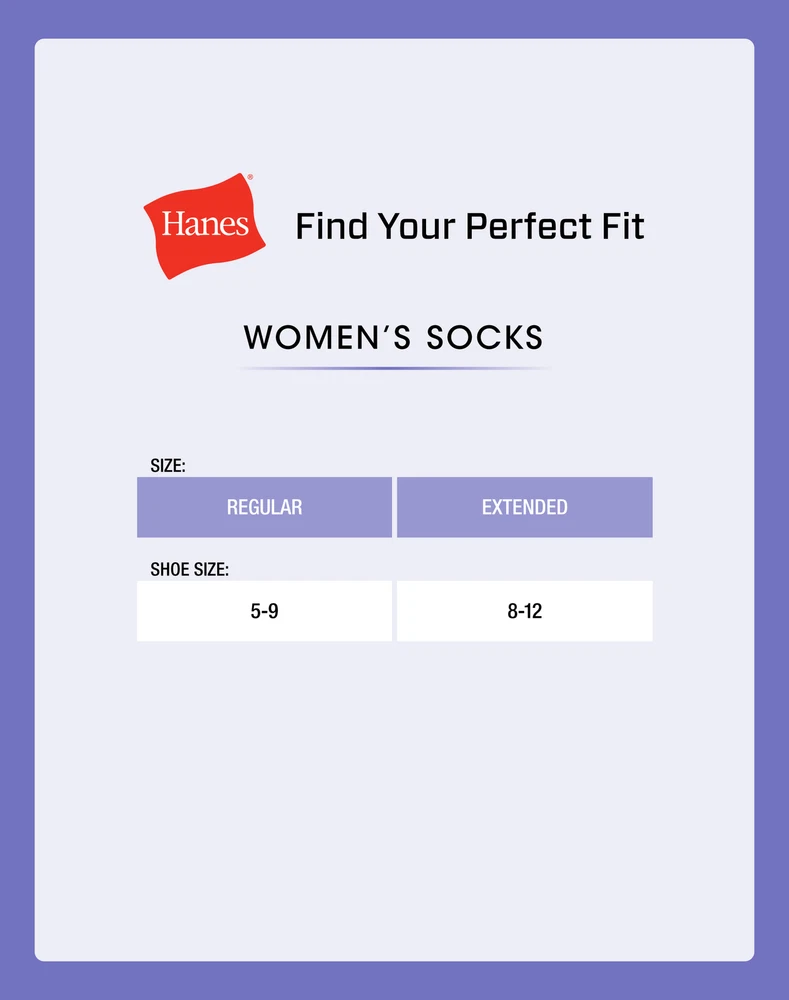 60 DAY RETURNS FREE SAME DAY SHIPPING MEN WOMEN BOYS GIRLS SHOP BY BRANDS Hanes Playtex Bali Just My Size Barely There Wonderbra L'eggs Hanes Hosiery Maidenform Lilyette Hanes Hanes Women's Breathable Lightweight Super No Show Socks Extended Sizes 8-12, 6-Pack Hanes Hanes Women's Breathable Lightweight Super No Show Socks Extended Sizes 8-12, 6-Pack Style : Item Description COMFORT WITHOUT THE WEIGHT Hanes women's lightweight and breathable super no show socks offer a non-cushioned layer of comfort and protection without the bulk. Arch support delivers a better fit around the foot, while Cool Comfort® moisture-wicking fabric helps keep feet cool and comfy. Built with X-Temp™ technology, these socks are designed to adapt to your temperature for all-day comfort. These women's socks are low-cut and disappear beneath most shoes, making them a perfect match when you want a discreet look. Available in a convenient 6-pack, these super no show socks are a sock-drawer essential. VALUE YOU LOVE - Available in a convenient 6-pack for stock-up ease. BREATHABLE - Lightweight construction with mesh panels add extra ventilation. X-TEMP TECHNOLOGY - Designed to adapt to your temperature for all-day comfort. KEEP YOUR COOL - Cool Comfort moisture-wicking fabric keeps your feet cool and comfy. IT'S ALL IN THE DETAILS - Arch support delivers a better fit around your foot. TOTAL COMFORT - Lightweight, non-cushioned comfort without the bulk. SUPER NO SHOW - Low-cut socks disappear beneath most shoes. Fabric Information Our Guarantee You can buy with confidence because you are purchasing directly from Hanes! You can trust that your purchase will be the authentic, first quality Hanes merchandise you love, as sold in leading stores everywhere. SIZE CHARTS Click here to view FIRST QUALITY Brand New Retail Items BROWSE BY BRAND ABOUT US HanesBrands is a socially responsible manufacturer and marketer of leading everyday basic apparel under some of the world's strongest apparel brands in the Americas, Europe and Asia, as well as in Australia and South Africa. Our iconic innerwear and activewear apparel brands found in the United States and elsewhere include Hanes, Playtex, Bali, Maidenform, JMS/Just My Size, Wonderbra and Gear for Sports. Outside the United States, we also have dominant national and regional brands, including DIM, Nur Die/Nur Der, Lovable, Abanderado, Shock Absorber, Zorba, Sol y Oro, Rinbros, Track N Field and Ritmo. We are the world’s largest marketer of basic apparel. We sell bras, panties, shapewear, sheer hosiery, men's underwear, children's underwear, socks, T-shirts, sweatshirts, fleece and other activewear. In the United States, we sell more units of intimate apparel, male underwear, socks, shapewear, hosiery and T-shirts than any other company. Founded in 1901, Hanes has a long history of innovation, product excellence, and brand recognition. In fact, nearly 90 percent of U.S. households have our company's products in them. We revolutionized Tagless T-shirts and underwear, we invented the sports bra and the stretch-cup T-shirt bra, we were the first to advertise a bra on national television (Playtex), and we are innovating with ComfortBlend and temperature-control X-Temp fabrics and seamless Smart Sizes bras. Our Sell More, Spend Less and Make Acquisitions strategies are driving growth and creating value for our shareholders, consumers, retailers, employees and communities. Hanes has made more than a half dozen acquisitions, including Maidenform Brands, Gear for Sports and Knights Apparel in the United States and DBApparel in Europe. Based in Winston-Salem, N.C., Hanes is a member of the S&P 500 and is ranked No. 490 on the Fortune 500 list. The company has approximately 65,300 employees in more than 40 countries. Unlike most apparel companies, Hanes primarily operates its own manufacturing facilities. More than 90 percent of the apparel units that we sell worldwide and in the United States are manufactured in our own plants or those of dedicated contractors. We take great pride in our strong reputation for ethical business practices and the success of our Hanes for Good corporate responsibility program for workplace practices and community and environmental improvement. The company is the only apparel producer to ever be honored by the Great Place to Work Institute for its workplace practices in Central America and the Caribbean. In the United States, the company has earned the Forbes magazine Best Place to Work honor. Hanes has won U.S. Environmental Protection Agency Energy Star sustained excellence recognition for seven consecutive years. Hanes has significant goals for reducing energy use, carbon emissions and water use and publicly reports its progress each year. More information about our Hanes for Good corporate responsibility initiatives may be found at www.HanesForGood.com PAYMENT Method: - Immediate payment is required upon selecting "Buy It Now". - We only accept payment via US PayPal accounts. PayPal allows you to pay using a major credit card or direct transfer from your bank accounts. Sales Tax Items purchased from Hanesbrands and shipped to any US location may be subject to tax as applicable by statute where registered. Promotional Other HanesBrands website discounts, coupons, and gift certificates are not valid for use on eBay. RETURNS At HanesBrands Outlet, we stand by the quality of our goods. HanesBrands Outlet eBay Store only offers quality new merchandise. If you are not satisfied with your purchase, we will accept your return within 60 days of order date. Upon receiving your return we will issue a credit to your PayPal account. (Note: We cannot do an exchange, you will simply need to place another order.) Returns can be sent to: HanesBrands Outlet eBay Store 5170 Indiana Ave. Winston Salem, NC 27106 (Please enclose packing slip with explanation.) Please note, products purchased via HanesBrands Outlet eBay Store cannot be returned to a HanesBrands Outlet Retail s