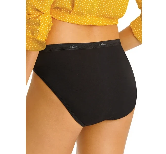 Stay comfortable all day with Hanes Women's Super Value Bonus Comfort Cotton Hi-Cut Underwear, featuring a generous 6+3 bonus pack. Designed with your comfort in mind, these panties are made from super-soft Cool Comfort fabric that effectively wicks away moisture, keeping you cool and dry no matter how busy your day gets. The hi-cut style offers full coverage in the front and back while elongating your legs with its flattering leg opening, making them a stylish choice for any outfit. Constructed from breathable, preshrunk cotton, these panties ensure a confident fit that lasts wash after wash. The ultra-soft waistband is designed to be gentle on your skin, preventing any pinching or binding. This value-packed set is perfect for stocking up on everyday essentials while enjoying the quality and comfort you expect from Hanes. Key Features: Cool Comfort Fabric : Moisture-wicking material keeps you cool and dry throughout the day. Hi-Cut Design : Provides full coverage with a flattering hi-cut leg opening for longer-looking legs. Super Soft Cotton : Made from breathable cotton for a soft feel against your skin. Preshrunk Fabric : Maintains its fit and comfort wash after wash. Ultra-Soft Waistband : Designed to prevent pinching and binding for all-day comfort. Convenient 6+3 Bonus Pack : Stock up with an extra three pairs for added value. Versatile Style : Perfect for wearing under any outfit, from casual to formal. Easy Care : Machine washable for effortless cleaning and maintenance. Quality You Trust : Hanes delivers comfort and durability in every pair.