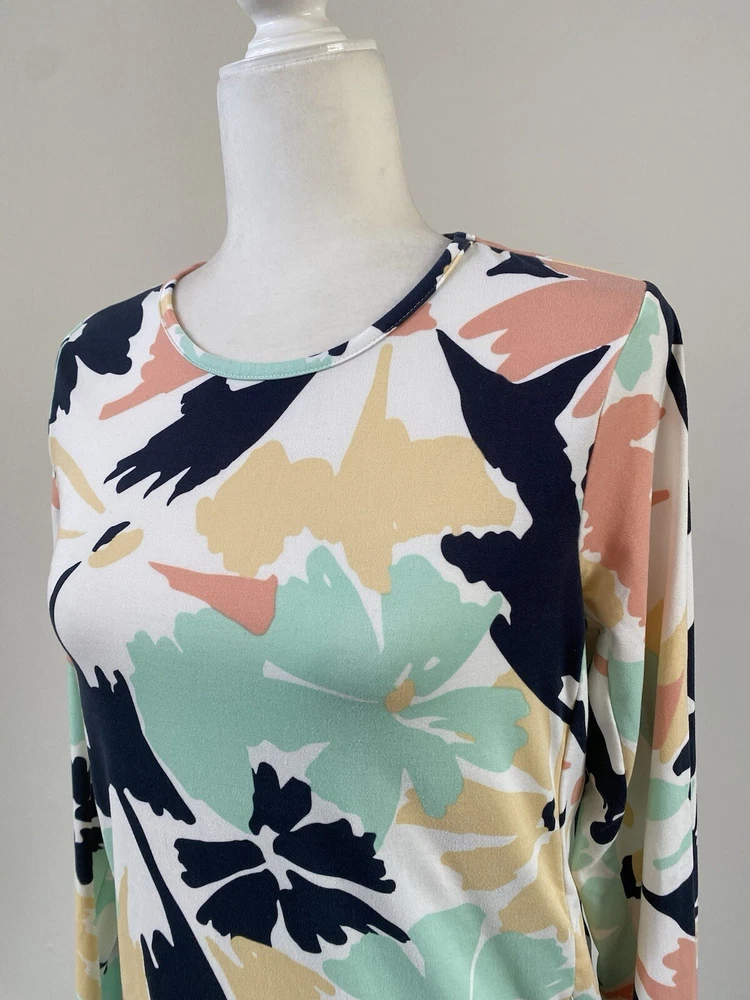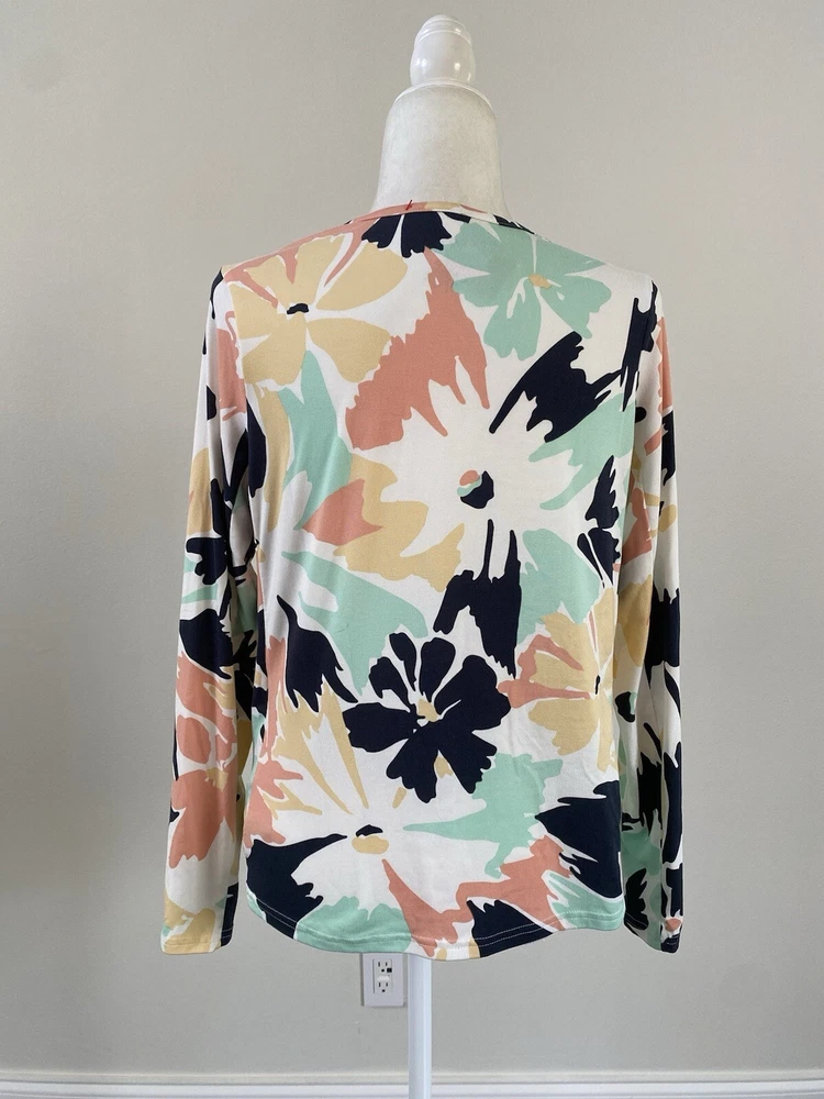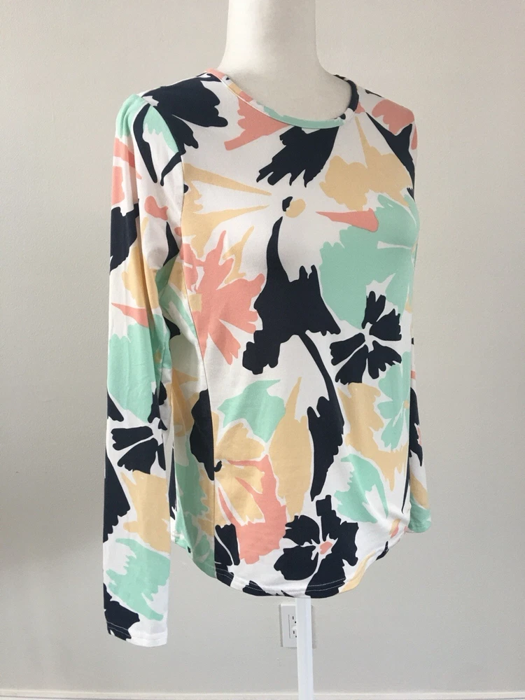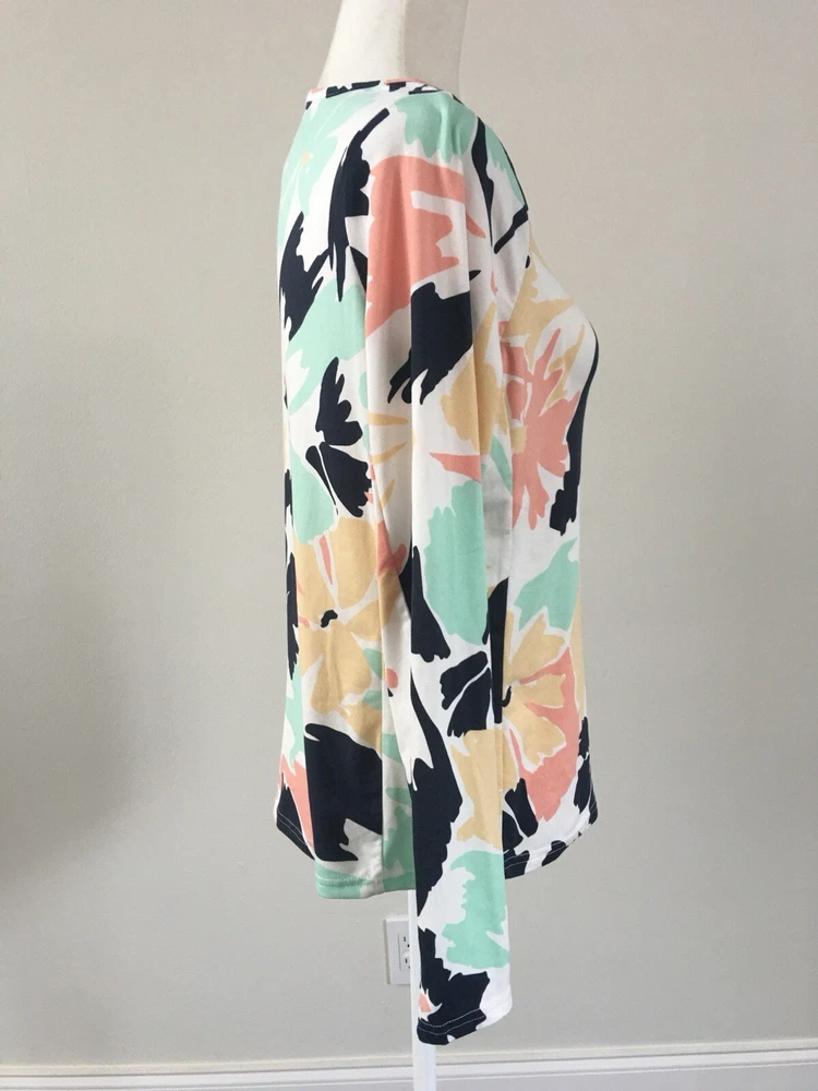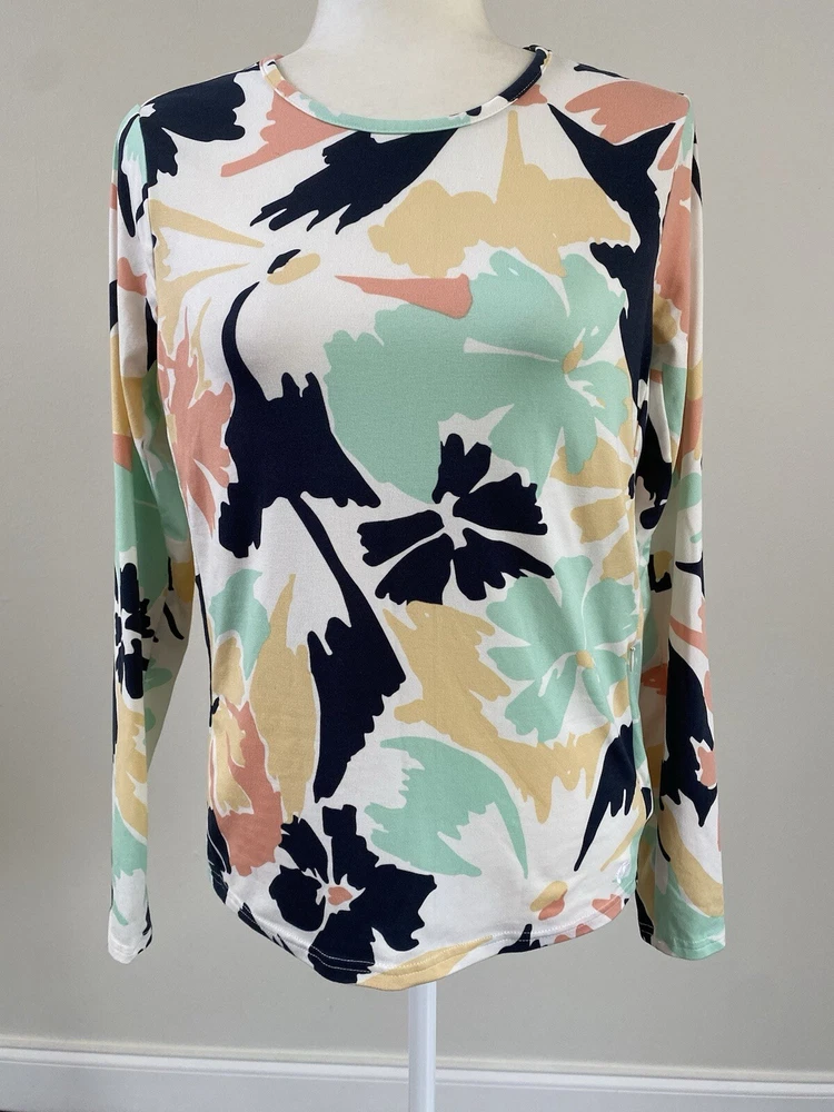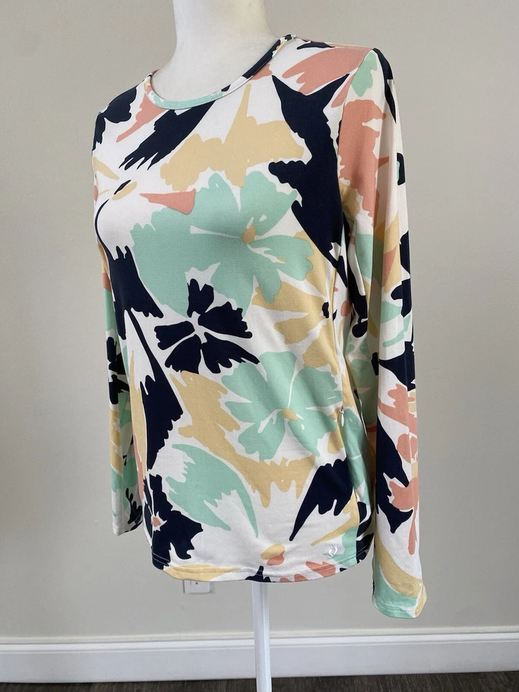 This Hang Ten women's top is perfect for any casual occasion, whether you're hitting the beach or just running errands. The tee shirt features a round neckline and long sleeves with a casual sleeve type. It is made from a lightweight and stretchy knit fabric, embroidered logo , mini zipped mini pocket aside consisting of spandex and polyamide, that provides UV protection and is easy to care for. The Floral pattern adds a touch of style to the shirt, while the zipper and embroidered accents make it unique. The shirt is available in size S and is machine washable. Condition of the item is Pre-Owned in great shape! Shipped asap by USPS ground advantage mail.