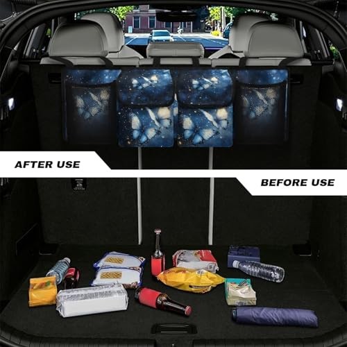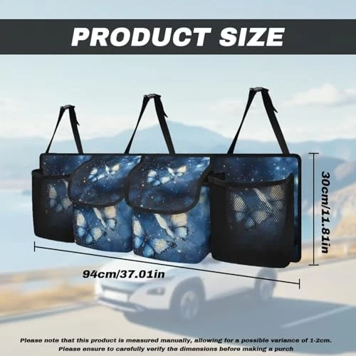 Return Policy Fast Delivery Trusted seller Blue Butterfly Print Car Trunk Organizer, Hanging Car Back Seat Storage Bag Multipurpose Auto Trunk Organizer Universal Automotive Trunk Storage Accessories Product Description 【Sturdy Oxford Cloth】: Our car trunk organizer is made of strong Oxford cloth, which is wear-resistant and tear-resistant, waterproof, long-lasting, can bear heavy objects without sagging, and effectively protects each of your items 【Hanging Storage Bag】: Our car trunk organizer adopts a hanging design, equipped with three adjustable buckles and straps, which can be easily fixed on the back seat of your car, protecting your car interior and carpet from stains, keeping the car clean and tidy, and at the same time freeing up space in your trunk for larger items such as strollers and luggage 【Large Capacity Design】: Our The car trunk organizer is equipped with two mesh pockets and two flap pockets, with large storage capacity, which can easily store car necessities, children's toys, baby products, pet products, sports equipment, travel and camping supplies, etc., solving the storage troubles of trunk items for you 【Exquisite Decoration】: Our car trunk organizer has a variety of prints such as national flags, butterflies, sunflowers, camouflage, cow patterns, flowers prints, leopard prints, etc. You can choose your favorite style to decorate your car trunk and show your unique style 【Easy to Install】: Our car trunk organizer takes less than 3 minutes to install. Connect the buckle and strap to the headrest, and then fix it to the seat back to install it successfully. When it is idle, you can fold it up and store it, so that your car can be kept clean and organized Shipping Returns Payment Shipping Shipping is FREE to all addresses other than APO/PO boxes in the lower 48 states. All our stock ships from US-based warehouses. Shipped via USPS or UPS (depending on location and package weight) Unless stated otherwise, all orders will ship within 24-72 hours of your payment being processed. Check our feedback to see the great reviews of FAST shipping we offer. Returns Seller does not accept returns Payment We currently accept payment via eBay managed payments only. Once payment is cleared, we will dispatch your shipment within 1-3 business days. Please refer to the "Shipping" tab for more information regarding shipping speed to your destination.