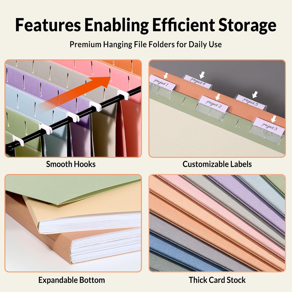 Hanging File Folders, 50 Pack Letter Size Hanging File Folders with 1/5-Cut Tabs