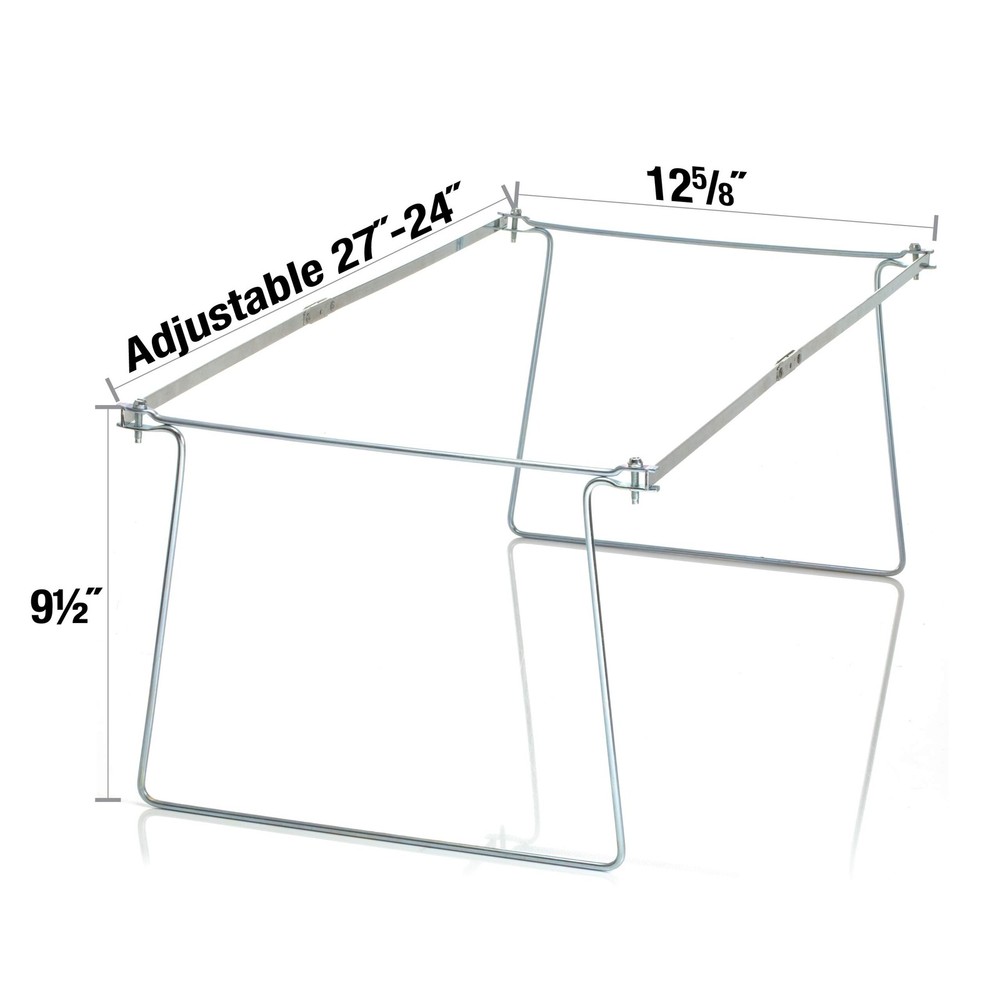 ADJUSTABLE FIT FOR 24″–27″ SPACES: Engineered to adapt to interior drawers or shelves with widths or depths from 24″ to 27″ deep — ideal for standard letter size hanging folders (8.5″ x 11″). Measure inside your space before ordering for the perfect fit. VERSATILE ORGANIZATION: Works beyond desk drawers — this hanging file frame transforms cabinets and shelves into a functional filing system for home or office. (Folders not .) HEAVY-DUTY STEEL CONSTRUCTION: Built with durable coated steel that supports loaded folders without sagging and withstands frequent use. 6 breakaway notches every ½″ offer quick customization to fit your space. EASY ADJUSTMENT & SETUP: Simply measure, align and trim the built-in breakaway notches — adjustment can be done with a standard household wrench, with no complex assembly required. ORGANIZE WITH CONFIDENCE: Clear sizing, adjustable rails, and durable steel construction make it easy to create a reliable filing system that fits your space and keeps your documents neatly arranged and easy to access.