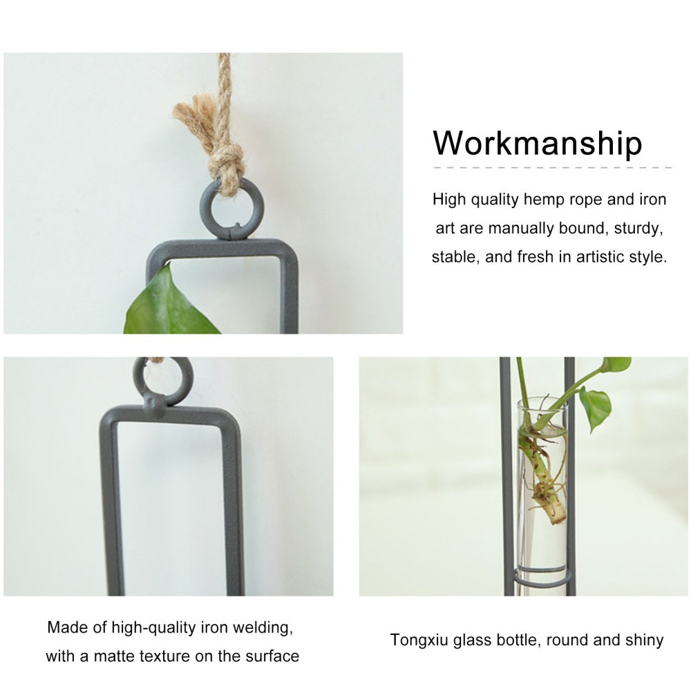 Features: Durable Material: The transparent vase is made of glass and iron material, lightweight, heat and cold resistant, practical and decorative. For Most Plants: Minimalist look is suitable for most of water plants, fresh flowers, hydroponic, such as ivy plant, orchid plants. Easy to Install: Hanging plant glass container is easy to assemble and requires no tools. Installation can be completed in one minute. Also easy for cleaning. Perfect Gift: For nature-loving friends, this is the perfect creative gift for your new home and office to appreciate and refresh your environment. Nice Service: Please contact us when you have any questions about this product, we will try to solve the problem for you as soon as possible. Specifications: Material: Iron, Glass Size: L: 32.5*4*3.2cm Package includes: 1 * Vase