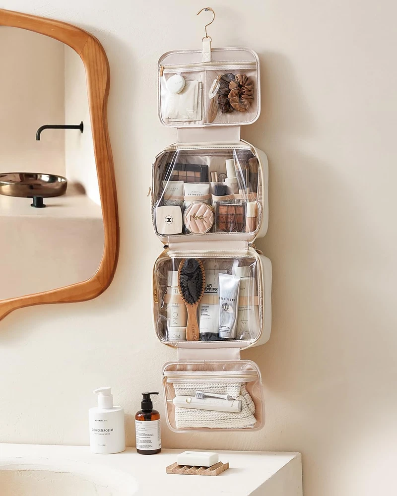 1. This toiletry bag is a game-changer for travel! The waterproof PU leather is sturdy, and the hanging hook makes it super convenient. Love the four compartments—perfect for keeping everything organized. The beige color is chic, and the double zippers add extra security. Highly recommend for anyone who loves hassle-free packing!