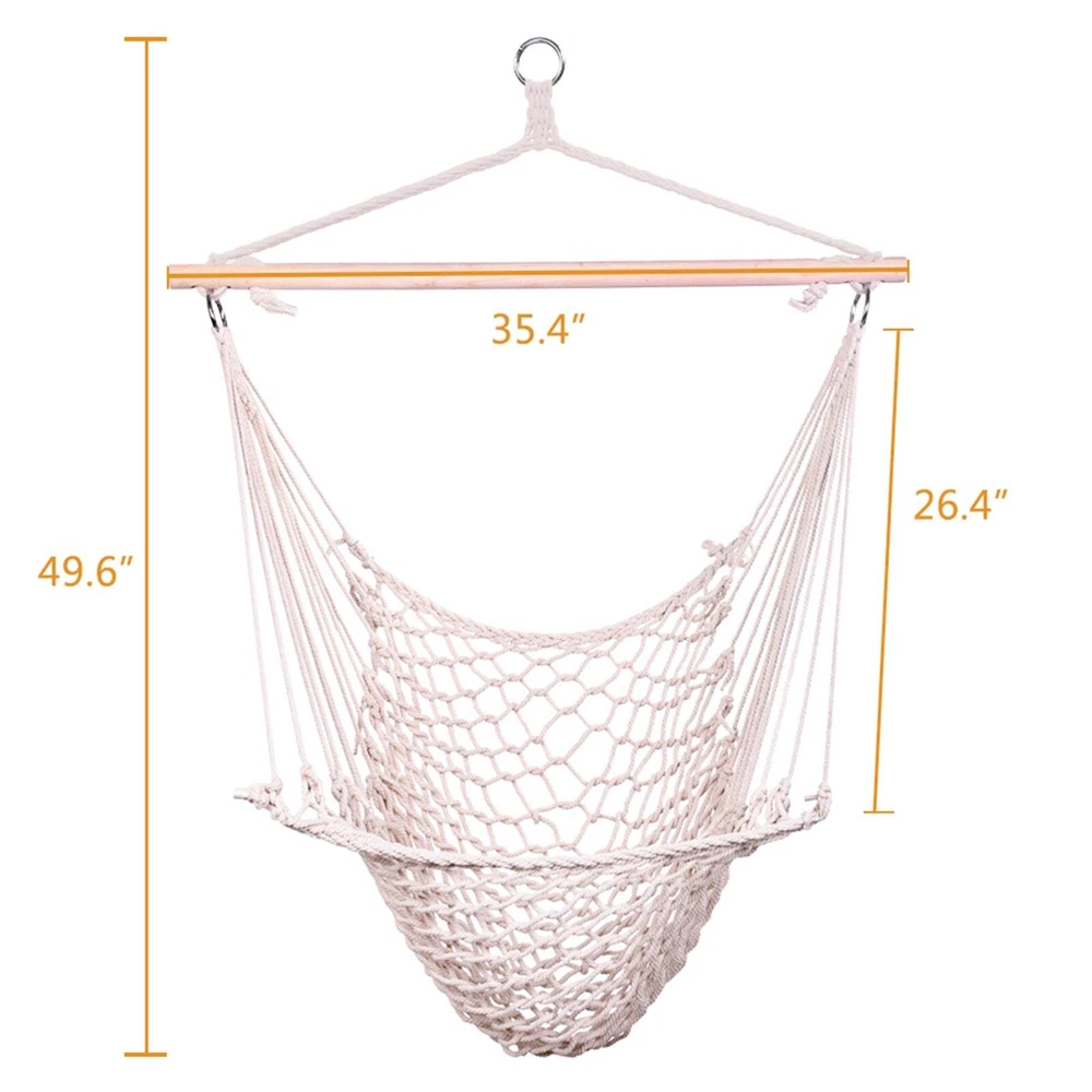 Tips: Please don't use it as a swing and shake it violently. Introductions: When going camping, people will take a tent, because it is one of indispensable accessories. In the tent, people could not feel the nearest nature, because it isolates them from annoying insects as well as nature. But to our delight, the Hanging Rope Air/Sky Chair can solve the problem of tent. The air chair's two ends could perfectly be hung on branches, over the earth a quite distance. You can enjoy charming sunshine in the comfortable air chair, stretching your body at full length and feeling free from gravity. That is totally a different feeling from bed at home. What's more, made up with high quality lightweight material, the air chair is easily to carry and store. Such a perfect hammock, why not have a try? Features: 1. New and high quality 2. Easy to hang and assemble 3. Lightweight and convenient to carry or store 4. Perfect for backyard, camping, hunting, hiking, traveling, etc. 5. Lightweight and firm, very comfortable 6. Suitable for outdoor use 7. Ultimate Relaxation 8. Stretches for your full body length so you rest from head to tow 9. Made of cotton with wood stretcher 10. Perfect to hang on porch or branch, comfy cradle chair will quickly become your favorite place to relax 11. This can not to be left out overnight, be caught in the rain or be used as a swing Specifications: 1. Dimensions: Please See the Pictures Wooden Stick Length: 35.43inch / 90cm, Diameter: 1.26inch / 3.2cm 2. Weight Capacity: 250lb 3. Single / Double: Single 4. Color: Beige 5. Whether has Hanging Rope: Yes Both Ends of the Rope Length: 9.84inch / 25cm The Middle Part's Length: 34.25inch / 87cm 6. Whether has Wooden Stick: Yes 7. Whether Waterproof: No 8. Whether has Sack: No 9. Weight: 1453g / 51.25oz Package Includes: 1 x Hanging Rope Air/Sky Chair Swing Beige Kindly notes: *This item cannot send from the United States to other countries. *This item cannot send to the following remote districts: PUERTO RICO, HAWAII, VIRGIN, GUAM GU, AMERICAN SAMOA, NORTHERN MARIANA ISLANDS.