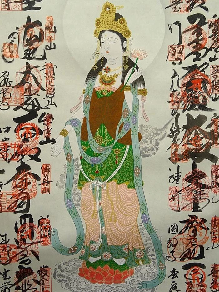 Item Title Hanging Scroll, 33 Nishigoku, Kannon Saigoku, Goshuin, Buddhist Painting, Silk, Payment Supports managed payments Please pay within 5 days after auction is finished. About Us We are located in Japan. It's our pleasure to make you happy by proposing our recommend item. If you have any questions or request about items, please feel free to ask us. International Buyers - Please Note: -Import duties, taxes, and charges are not included in the item price or shipping charges. These charges are the buyer's responsibility. -Please check with your country's customs office to determine what these additional costs will be prior to bidding/buying. -These charges are normally collected by the delivering freight (shipping) company or when you pick the item up - do not confuse them for additional shipping charges. -We do not mark merchandise values below value or mark items as - gifts - The US and International government regulations prohibit such behavior. Thank you for your understanding.