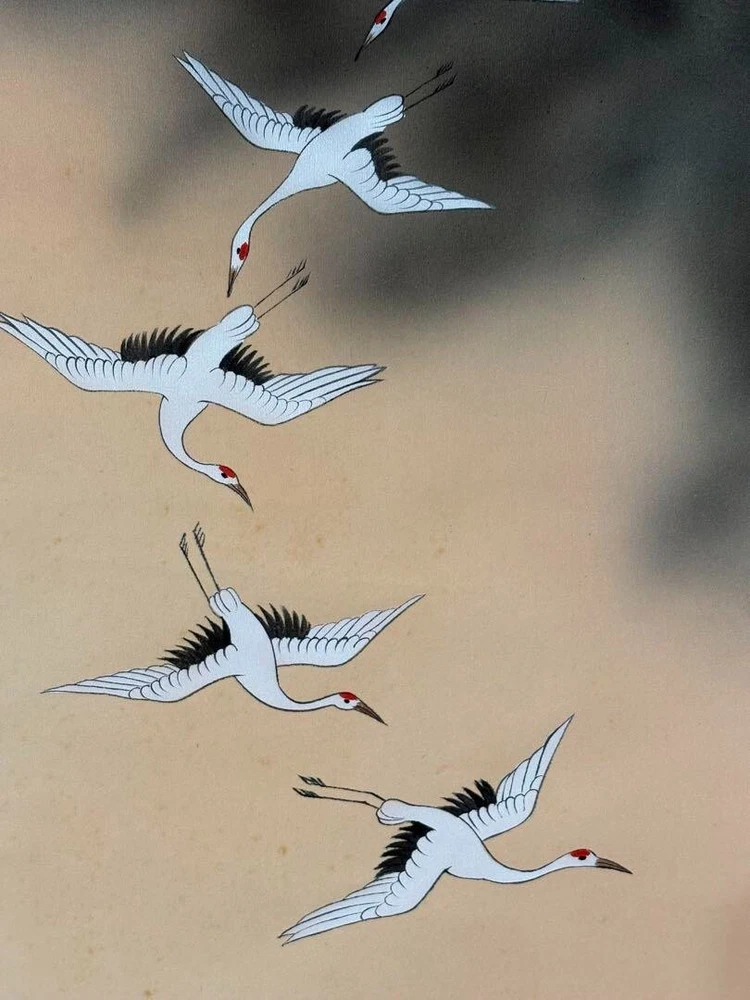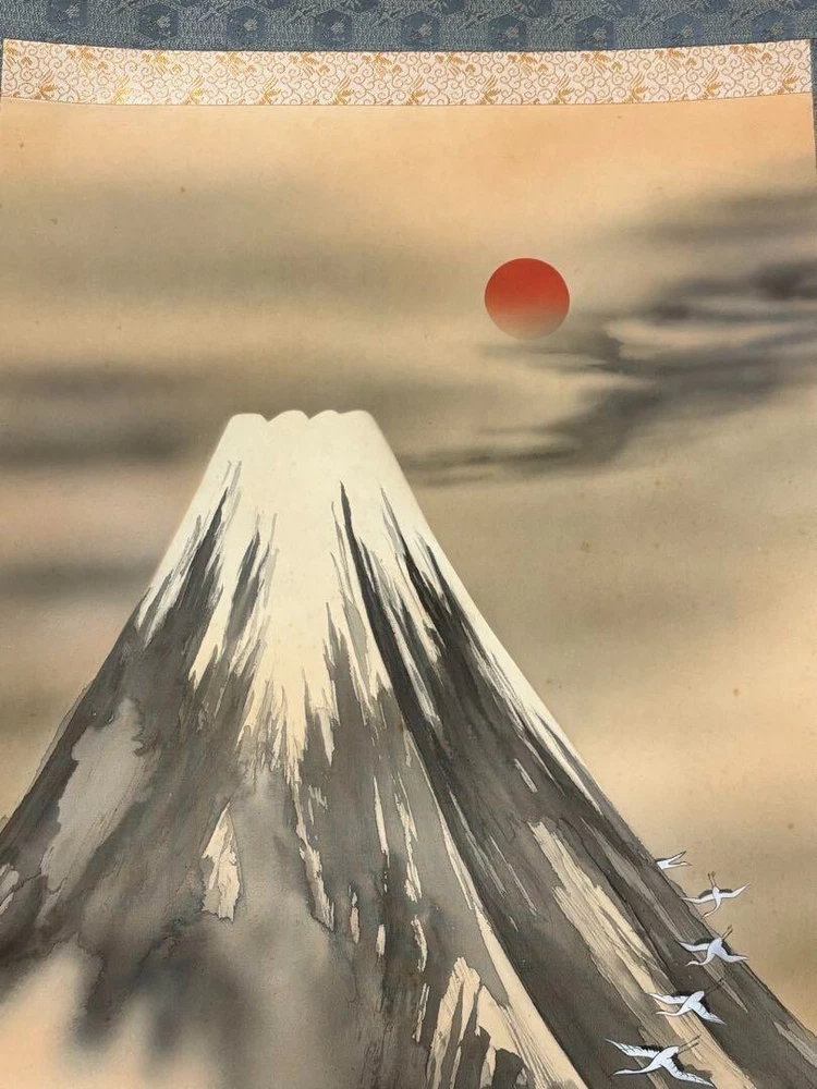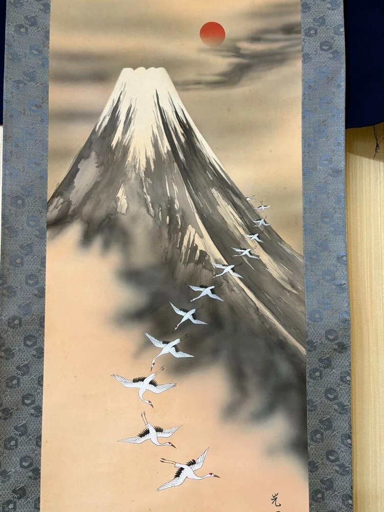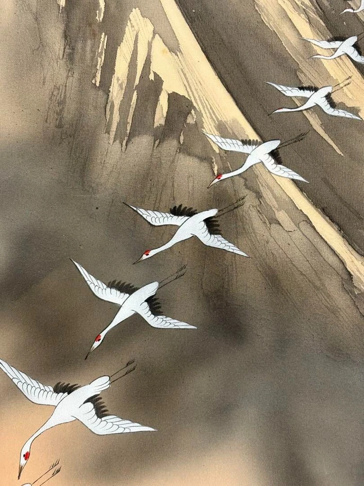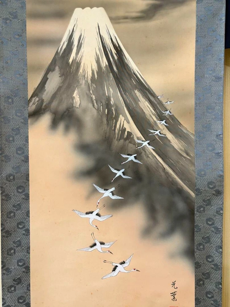 Hanging Scroll "Cranes Flying Over Mount Fuji" by Koyo