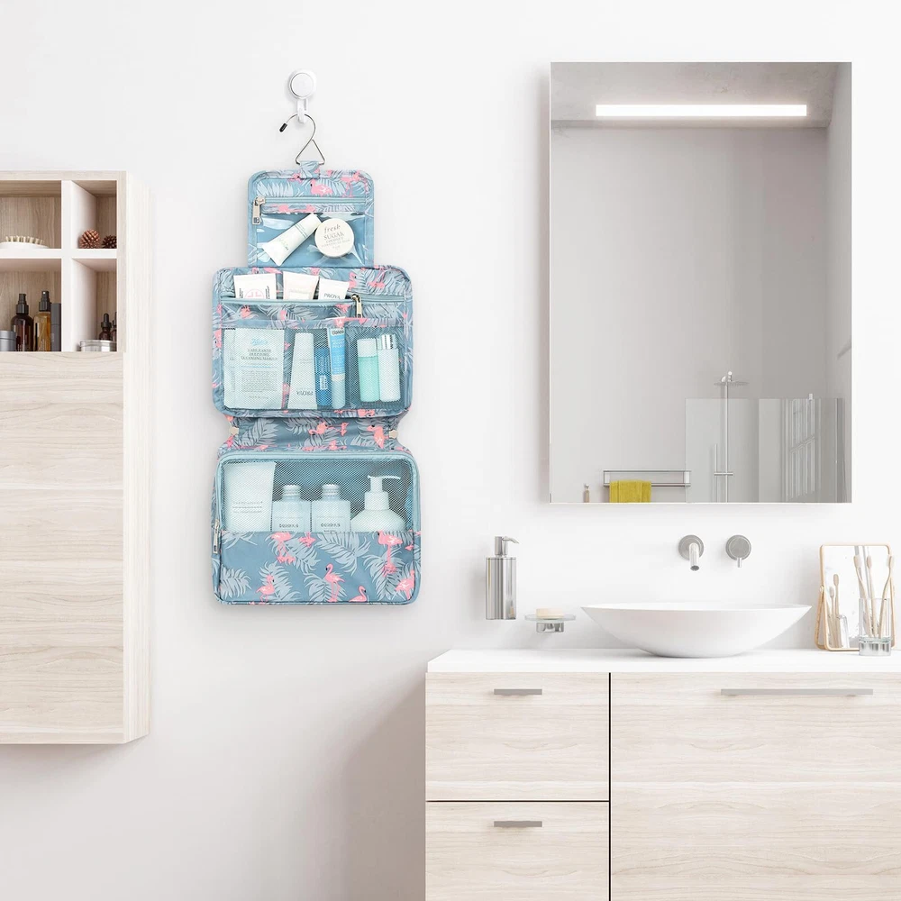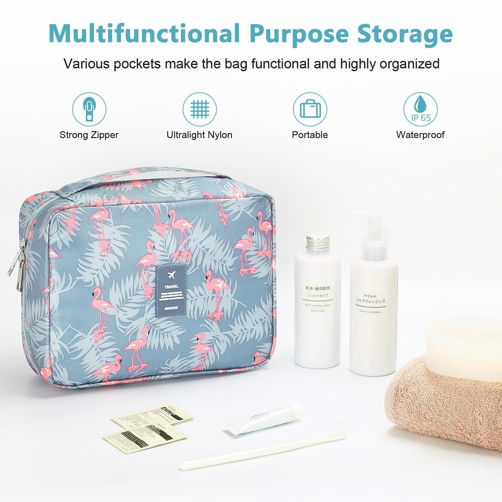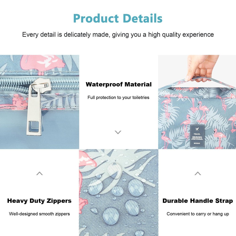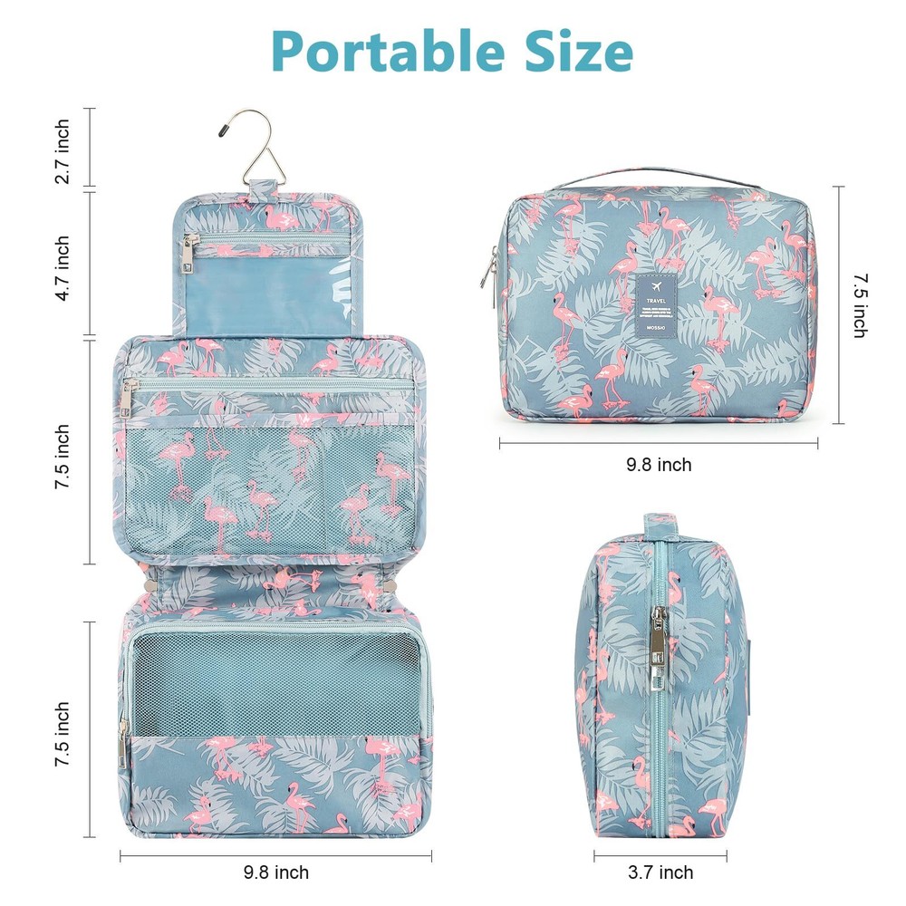 Mossio Hanging Toiletry Bag with Sturdy Hook - Large Portable Cosmetic Makeup Travel Organizer for Men & Women Grey Flamingo HIGH QUALITY - Made of durable, water-resistant polyester fabric & ventilate mesh cloth. Lined to prevent leaks. The stitching is well sewn and reinforced at all stress points STURDY HOOK DESIGN - The attached hanging hook lets you hang the bag on the bathroom door, shower rod or towel rack for fast access to your toiletries, as well as simply storing your travel case when not needed LARGE CAPACITY - Size: 9.8"L x 7.5" W x 3.7" H. You can put your make-up, shampoo, toothbrush, toothpaste and so on, all in one place. Make your travel comfortably to have all your necessities in one bag MULTIPLE COMPARTMENTS - Three main compartments keep your toiletries and cosmetics in place. Inner large pocket with elastic straps hold bottles upright. Easy to carry with a durable handle when you take it to travel or bathroom TRAVEL IN STYLE - Compact, sturdy, portable, lightweight. Our traveler bag is a perfect choice to put in your suitcase on any business or family trip, camping, beach or gym SHIPPING Domestic Buyers - We have confidence in our products, but if you are not fully satisfied please contact us within 30 days of purchase and you will get full refund. - We ship within 3 business days of payment, usually sooner - We offer FREE shipping on all orders! - We only ship to the lower 48 states, no APO/FPO addresses or PO Boxes allowed International buyers – please note: Import duties, taxes, and charges aren't included in the item price or postage cost. These charges are the buyer's responsibility. - Please check with your country's customs office to determine what these additional costs will be prior to bidding or buying. * Order Cancellation Policy ** You can return a product for up to 30 days from the date you purchased it. 1. The seller reserves the right to cancel the special case only due to eBay cancellation fee. 2. The decision of seller is the final. 3. The seller will respond to the cancellation request within 2 business days. Please wait for the result of cancellation. 4. In case the cancellation is not completed by some reasons, the buyer can follow the options below to get the refund. 4.1 The buyer can reject the item when it arrives. 4.2 The buyer can send the item back to the seller within 30 days If the buyer receives item (USA Shipment ONLY). The seller will provide the FREE return label to the buyer when the buyer opens " Return Item" case on eBay by using the reason as "Change my mind" ONLY. 5. When buyer has placed the order. The order will be processed and completed by automatic warehouse system within 5 minutes. In case that buyer sends the cancellation request after 5 minutes of placing the order, the request will be rejected. **Sending direct message to cancel the order is not allowed for every case.* Return Policy For the return case - If buyer would like to return the items for refund or replacement, please CONTACT SELLER to receive the free return label from seller. The refund or replacement will be processed with the tracking number of return label which is provided by seller only. The other ways of return which are not approved by seller will not be processed for the refund or replacement.