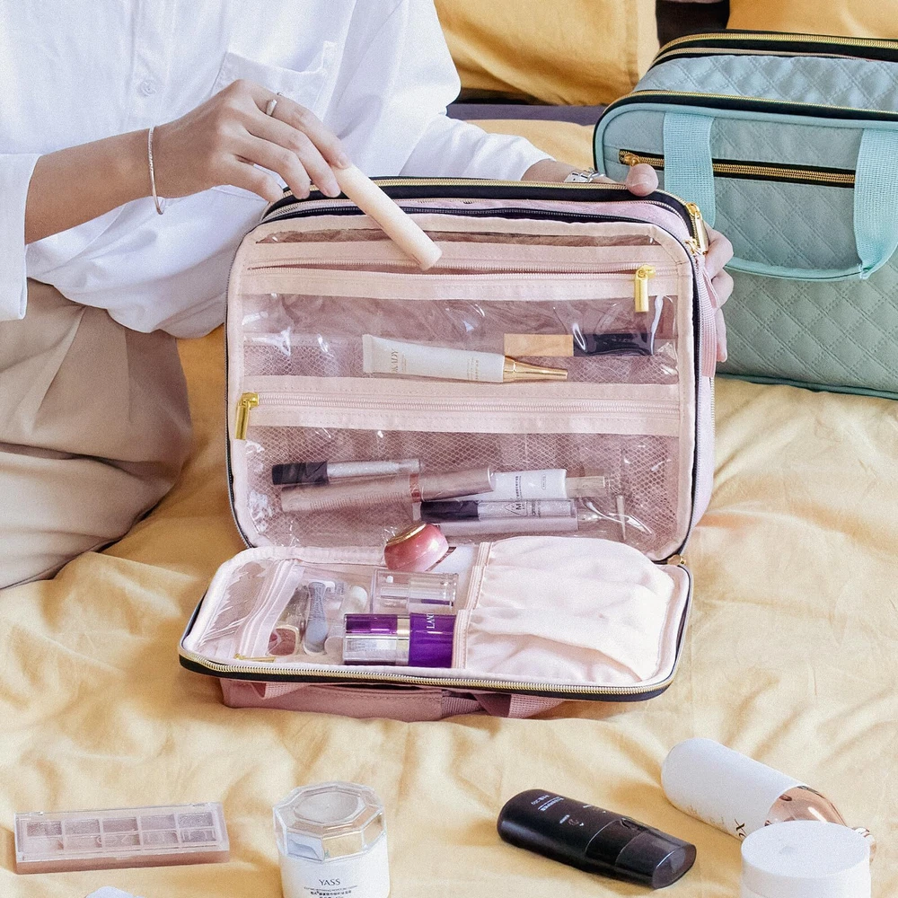 Women's Large Expandable Detachable Clear Toiletry Bag in Classic Black