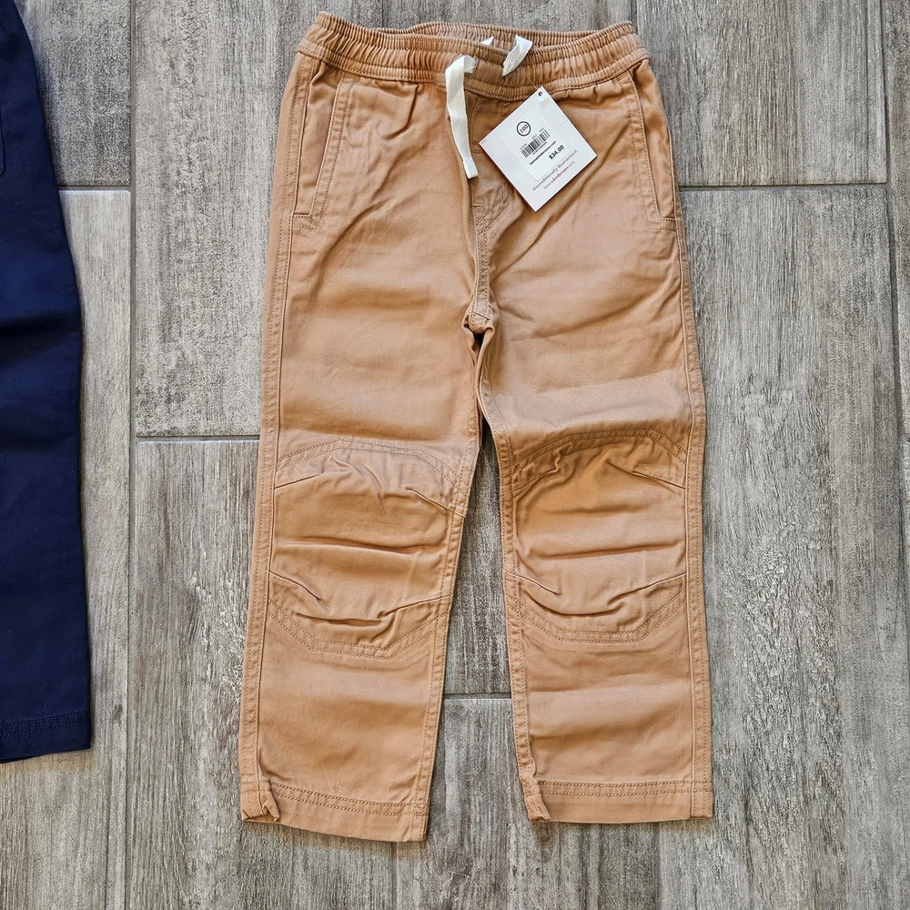 Hanna Andersson Boys Pants Lot of 2 Navy Tan Jogger Drawstring Size 4 NEW