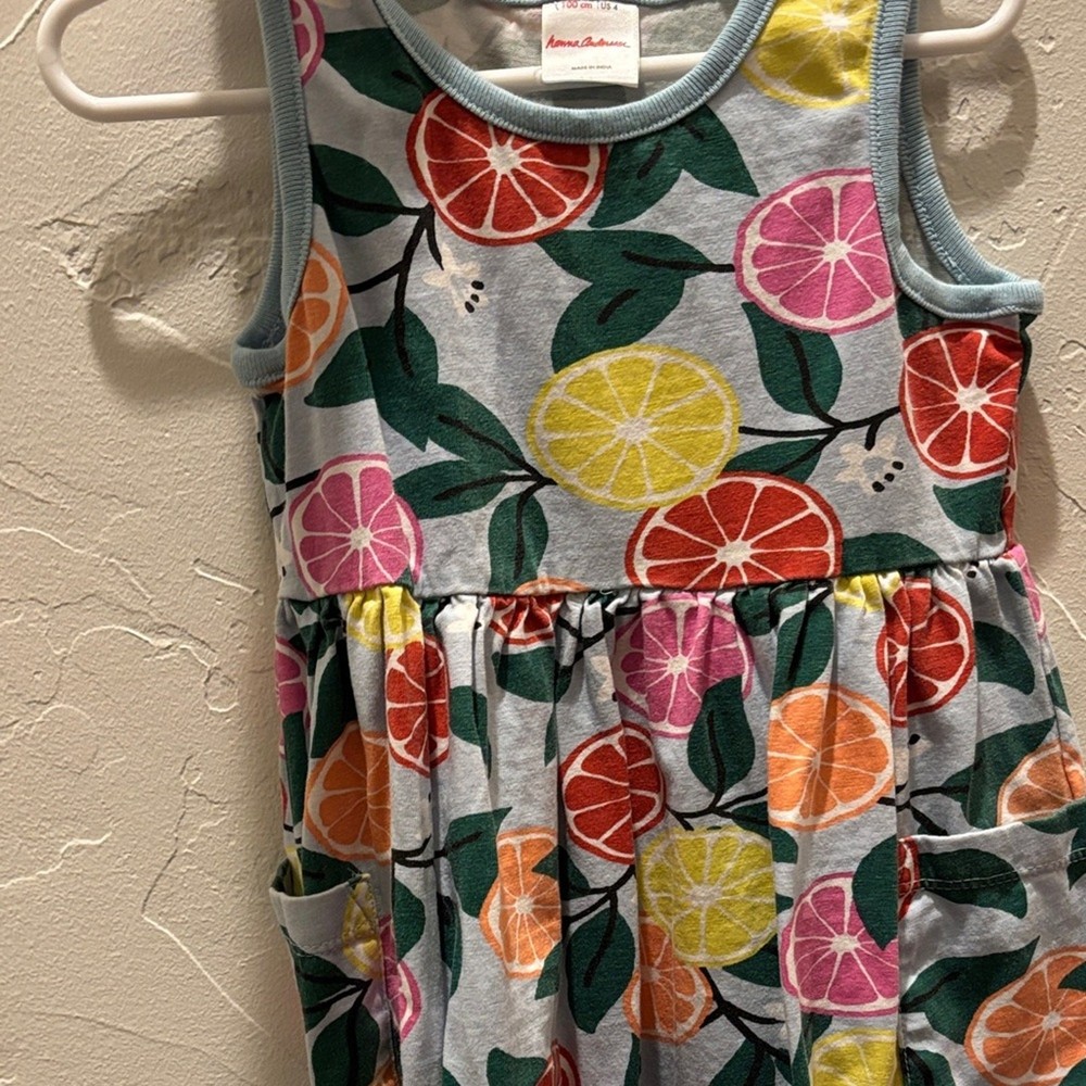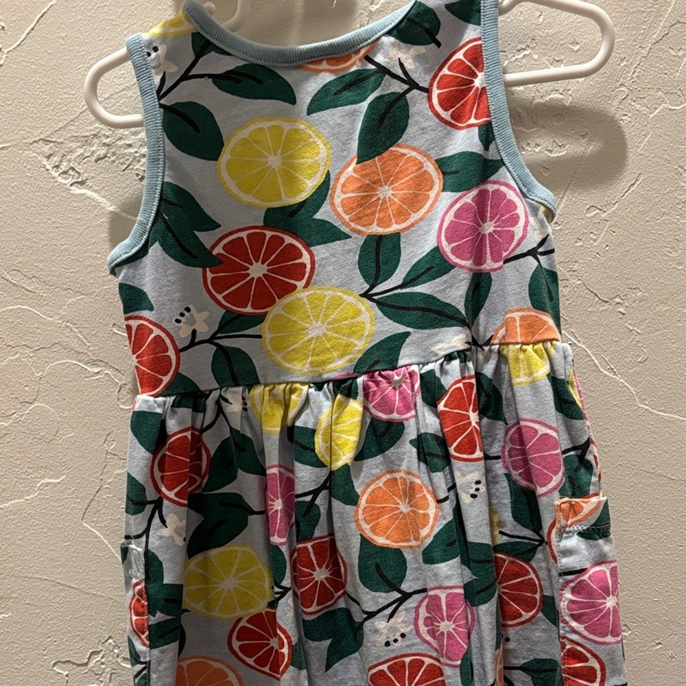 Brighten up your child's wardrobe with this vibrant citrus print dress. Featuring a playful mix of colors, it's perfect for any occasion. No flaws- it is in perfect shape.