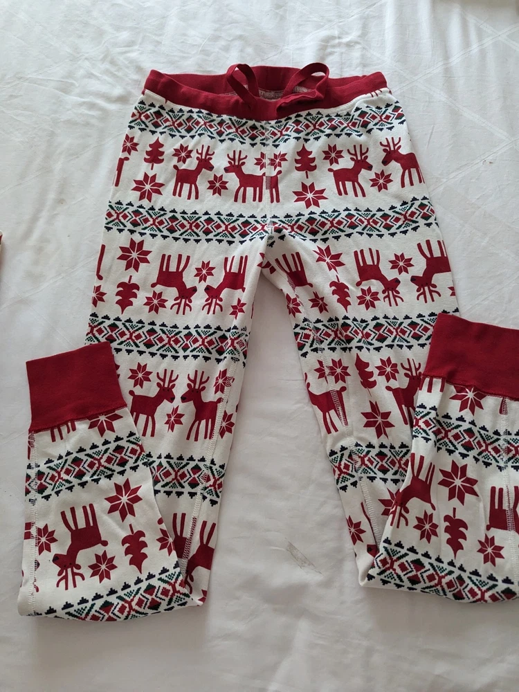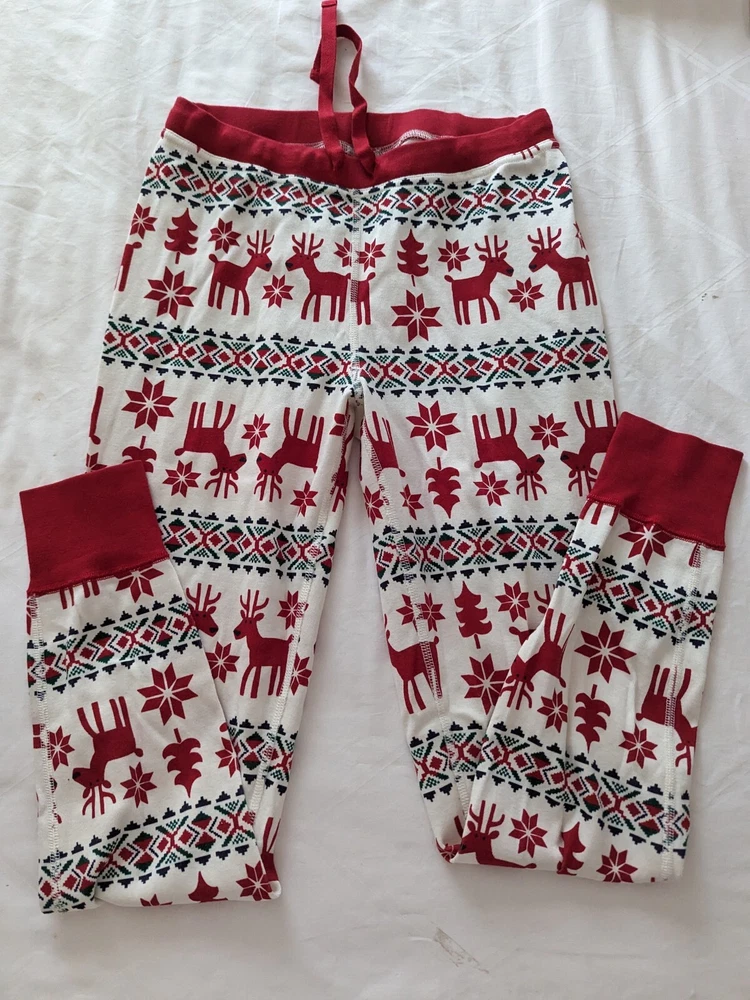 Add some cozy and festive touch to your little one's sleepwear collection with this Hanna Andersson PJ bottom. The red and ivory Fair Isle print features adorable reindeer and holiday designs that will make them excited for bedtime. Made of 100% organic cotton, these PJ bottoms are comfortable and breathable, perfect for staying cozy during the winter and fall season. The PJ bottom is machine washable and easy to care for, making it a practical choice for busy parents. Available in size S, this unisex kids' clothing is suitable for both boys and girls. Add some holiday spirit to your child's sleepwear collection with this charming Hanna Andersson PJ bottom.
