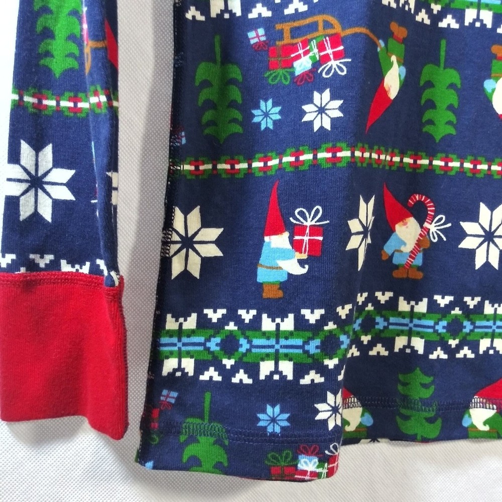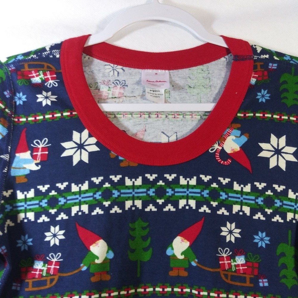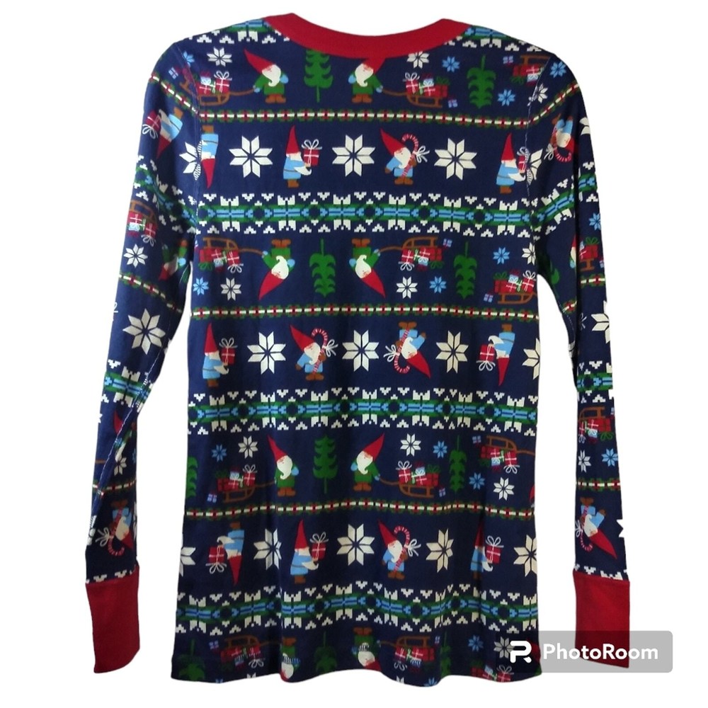 Hanna Andersson Women's Holiday Print Long John Pajama Top Gnome Sweet Gnome Size M Organic combed cotton rib knit Super-smooth flatlock seams Soft ribbed cuffs Slim fit Gently worn Light wash wear approximate measurements pit to pit 17" length 25"