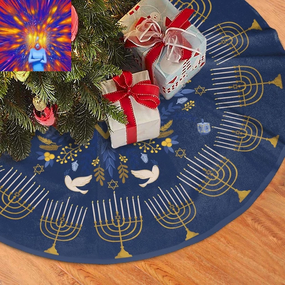 Hanukkah Candlestick Stars Christmas Tree Skirt Funny Tree Mat for Farmhouse Xma