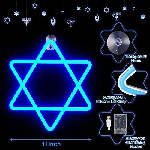 Menu 1. We require immediate payment. 2. We currently accept payment via eBay managed payments only. 3. Once payment is cleared, we will dispatch your shipment within 1-3 business days. Please refer to the "Shipping" tab for more information regarding shipping speed to your destination. Hanukkah Decorations Star of David Blue Neon Window Lights, 12 Inch Battery and USB Powered Chanukah LED Neon Sign Lights with Timer for Jews Judaism Synagogue Passover Shabbat Hanukkah Party Decor Product description ✡︎【Lighted Hanukkah Decorations】: the LED Hanukkah light is made of flexible silicone LED strips; The connection between the neon light bar and the wire is wrapped with waterproof PVC material; 12.6 inch diameter blue Chanukah lights, creates a solemn atmosp for Hanukkah ✡︎【Dual Power Supply Mode】: the Hanukkah decoration can be lighted up by 3 AA Batteries (not included) or USB, about 10 feet/ 3 meter cord; The battery box has a timing function and can be connected to a power bank, computer and so on, low energy consumption and good heat dissipation; Warning: the 2 charging methods cannot be applied at the same time; If using USB, please remove the battery ✡︎【Classic Elements Design】: the star of David are typical Hanukkah elements and the Star of David style symbolizes David's courage to defeat the giant Goliath; The Chanukah light in the shape of hexagram and the lighting effect of the blue neon light strips are more bright and well proportioned ✡︎【Suction Cup Hanging】: the LED Chanukah decorations light comes with a suction cup hook for easy hanging, just put the hanging holes of Hanukkah window light onto the suction cup hook, press the suction cup onto the window, cabinets or other smooth places, the height can be adjusted according to the fixed position ✡︎【What You Will Get】: you will receive 1 piece Hanukkah decoration light with USB plug and battery box and 1 piece suction cup hook, you can decorate them as much as you want, such as window, mirror, front door, cupboard, above fireplace, to remind people of the meaning of Hanukkah PLEASE MESSAGE US IF YOU HAVE ANY OTHER QUESTIONS, AND MANY THANKS FOR READING ALL OF THIS. Copyright ©#. All Rights Reserved.