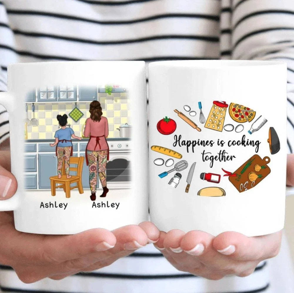Happiness Is Cooking Together Mother And Daughter Kitchen Mother's Day Gift Product Details.. This high quality 11oz. ceramic white mug has a premium hard coat that provides crisp and vibrant color reproduction sure to last for years. Perfect for all hot & cold beverages. The highest quality printing possible is used. It will never fade no matter how many times you wash it. Material: 100% Ceramic. Print both sides. Dishwasher and Microwave Safe. High Gloss + Premium White Finish. Printed in the U.S.A. Personalized & Custom. We support personalized and custom mug to add custom, when placing an order, you can add notes to the "order note" in shipping address section. Also you can contact us directly via message. Shipping Info. Ready to ship in 1 to 2 business days, All products are made-to-order and proudly printed in the United States. Shipped by USPS and DHL, You will receive your order in 5-7 days. Replace & Refund. All products are defective during shipping broken, chipped will be replaced free of charge. You are not satisfied with the product, we will refund 100% money to you. If any other issues arise, please do not hesitate to message, we would be more than happy to assist you.