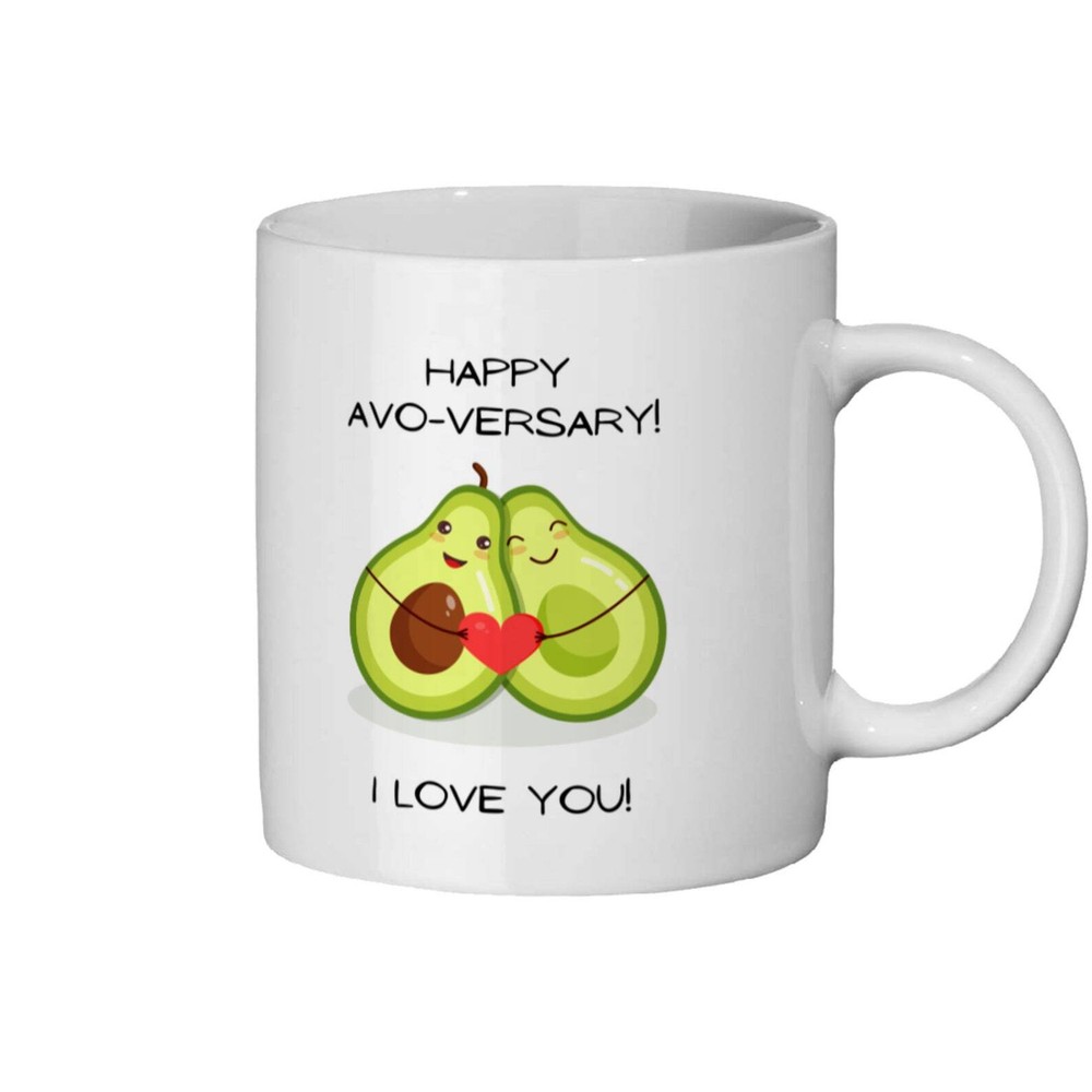 Happy Avo Versary Mug: Anniversary Gift Anniversary Mug I Love You Mug Gift For Loved One Gift For Partner Gift For Wife Gift For Love Product Details.. This high quality 11oz. ceramic white mug has a premium hard coat that provides crisp and vibrant color reproduction sure to last for years. Perfect for all hot & cold beverages. The highest quality printing possible is used. It will never fade no matter how many times you wash it. Material: 100% Ceramic. Print both sides. Dishwasher and Microwave Safe. High Gloss + Premium White Finish. Printed in the U.S.A. Personalized & Custom. We support personalized and custom mug to add custom, when placing an order, you can add notes to the "order note" in shipping address section. Also you can contact us directly via message. Shipping Info. Ready to ship in 1 to 2 business days, All products are made-to-order and proudly printed in the United States. Shipped by USPS and DHL, You will receive your order in 5-7 days. Replace & Refund. All products are defective during shipping broken, chipped will be replaced free of charge. You are not satisfied with the product, we will refund 100% money to you. If any other issues arise, please do not hesitate to message, we would be more than happy to assist you.