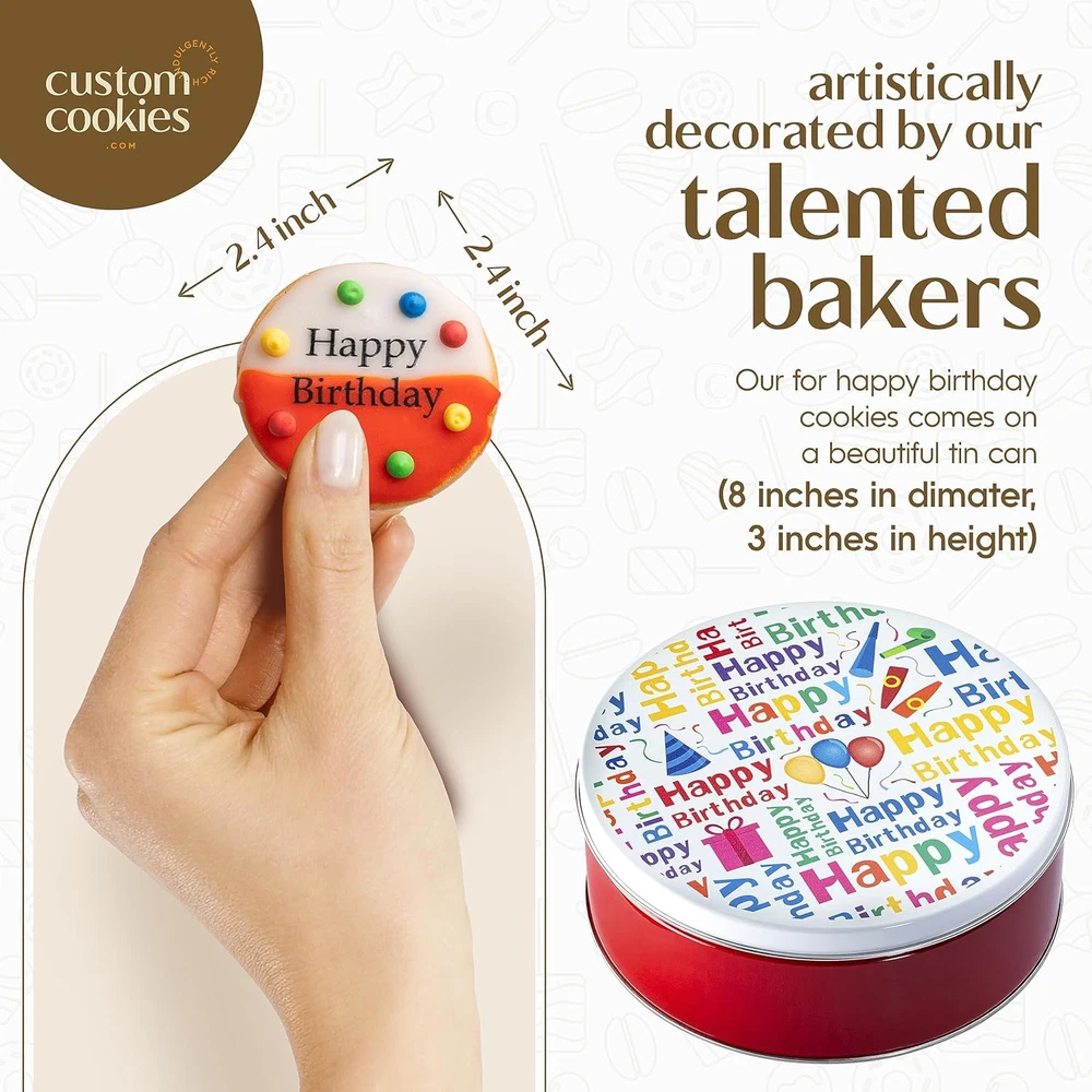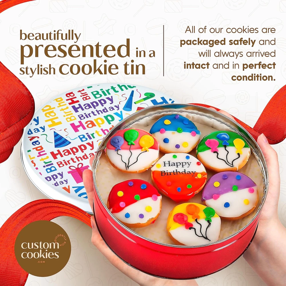 Happy Birthday Cookie Gift Basket Tin Filled with 21 Individually Hand Decorated