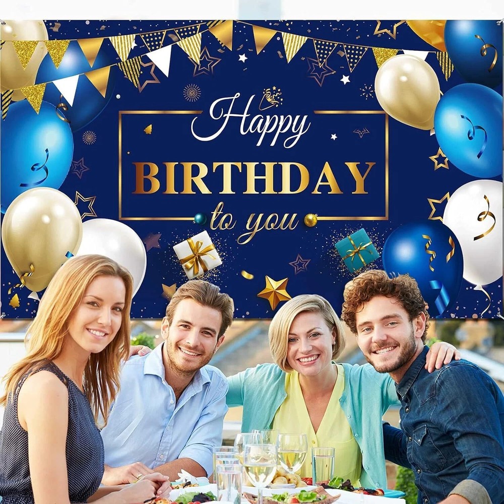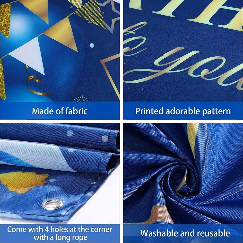 Item model number -Decorations Banner-96 Color Blue-Gold Item Weight 5.9 ounces Occasion Anniversary, Birthday Product Dimensions 9.84"L x 0.39"W Product Care Instructions Hang It Polyester What you get: there is 1 piece of happy birthday sign backdrop, designed with navy blue and gold color and printed with balloons, gifts and stars patterns, adding an impressive beauty to the birthday party, an essential decoration to create memorable birthday party atmosphere Large size: this happy birthday backdrop banner measures approx. 185 x 110 cm/ 72.8 x 43.3 inch, it is large enough to decorate birthday party and as photo prop to take photos, which will make you and your friends enjoy the party Durable material: the photo backdrop background is made of durable polyester fabric, lightweight, foldable and easy to carry, washable and tear-resistant, suitable as your birthday party and anniversary party decoration, can be applied for a long time Easy to use: the happy birthday backdrop banner comes with 20 feet/ 6 meters rope, which is easy to through the copper grommet, you can hang it wherever you want, which will help you create a sweet birthday party Wide applications: the birthday backdrop banner is designed with birthday party elements, can be applied for decorating various occasions, such as birthday party, theme party and so on, you can hang it on wall, door, and so on, or use it as a birthday party supply, wall decor, table banner, photography, etc.; You can also write some words on it, which will make a deep impression on others